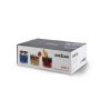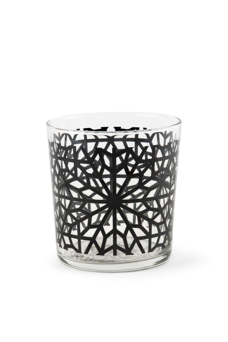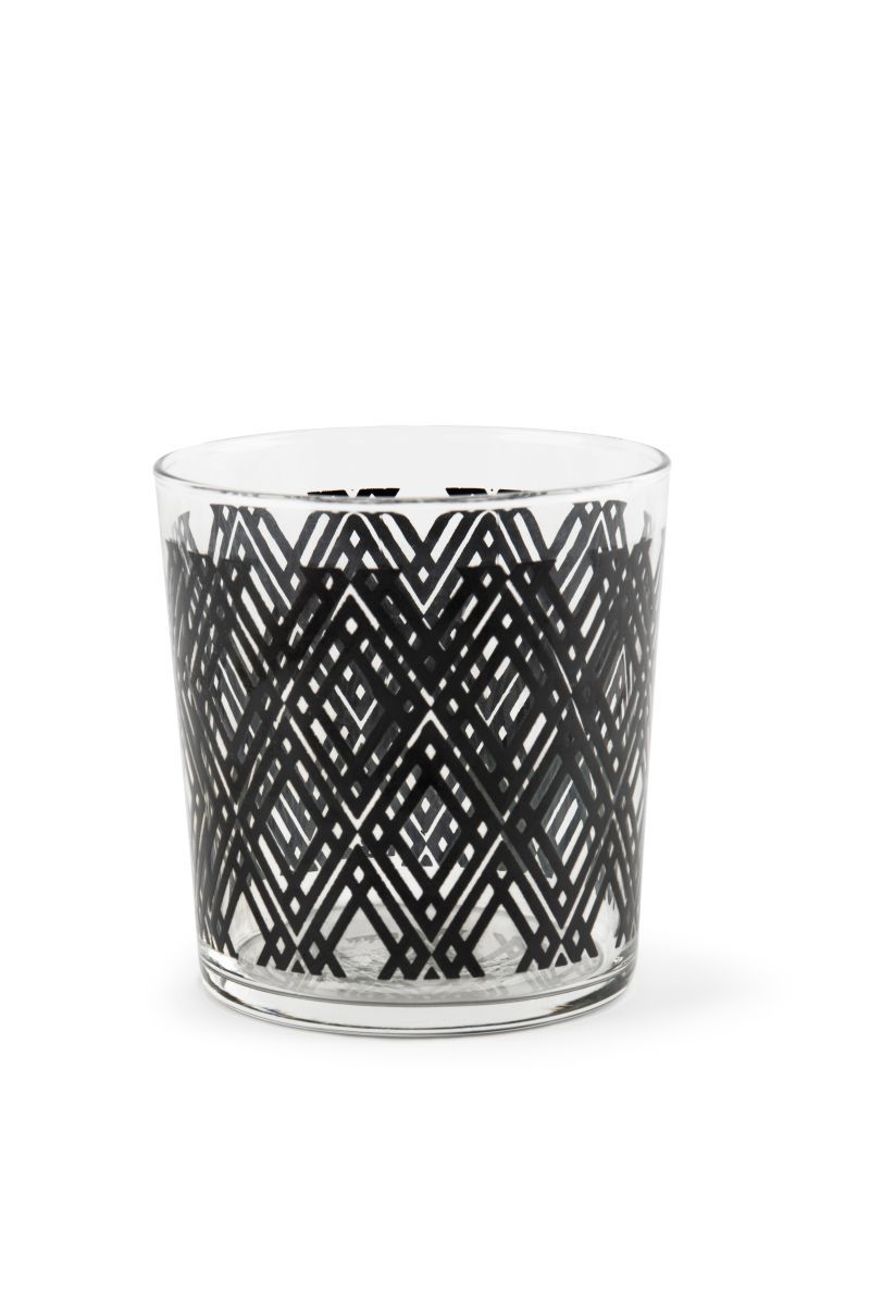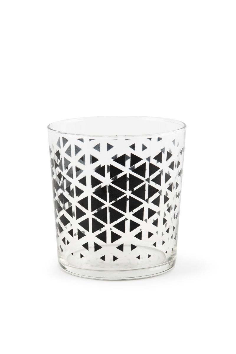 I bicchieri acqua della collezione Emily sono personalizzati con la fantasia che contraddistingue proprio questa serie: forme geometriche stilizzate di colore nero su vetro trasparente. Grazie alla loro leggera forma conica i bicchieri Emily sono impilabili.