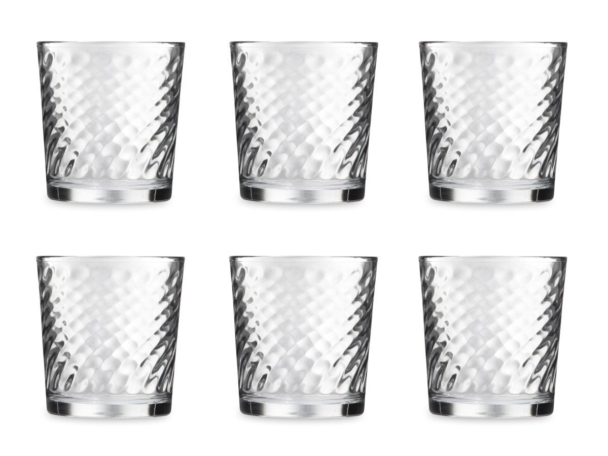 In vetro trasparente, ogni bicchiere ha una forma classica ed elegante. I bicchieri sono impilabili, salvaspazio.