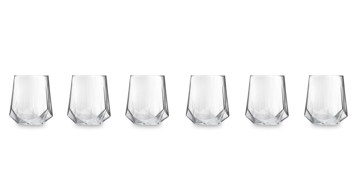 Bicchieri acqua, 6 pezzi, vetro trasparente, forma diamante