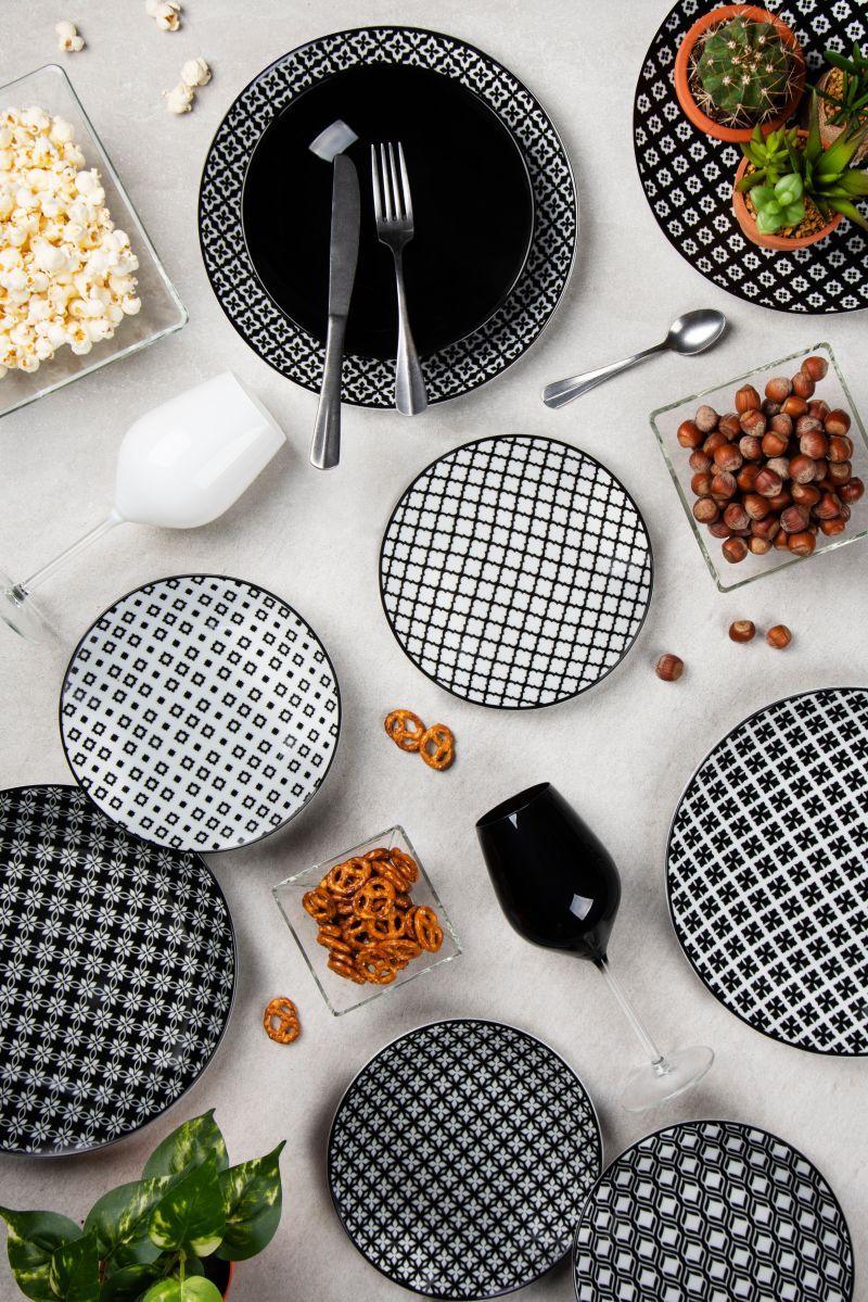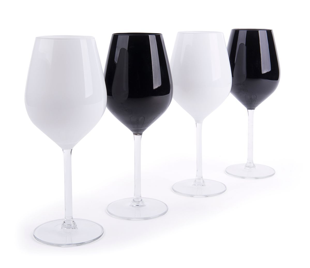 Il set di 4 calici Color Wine bianco e nero sono perfetti per una tavola moderna ed elegante. Ogni calice ha una capacità di 500 ml.