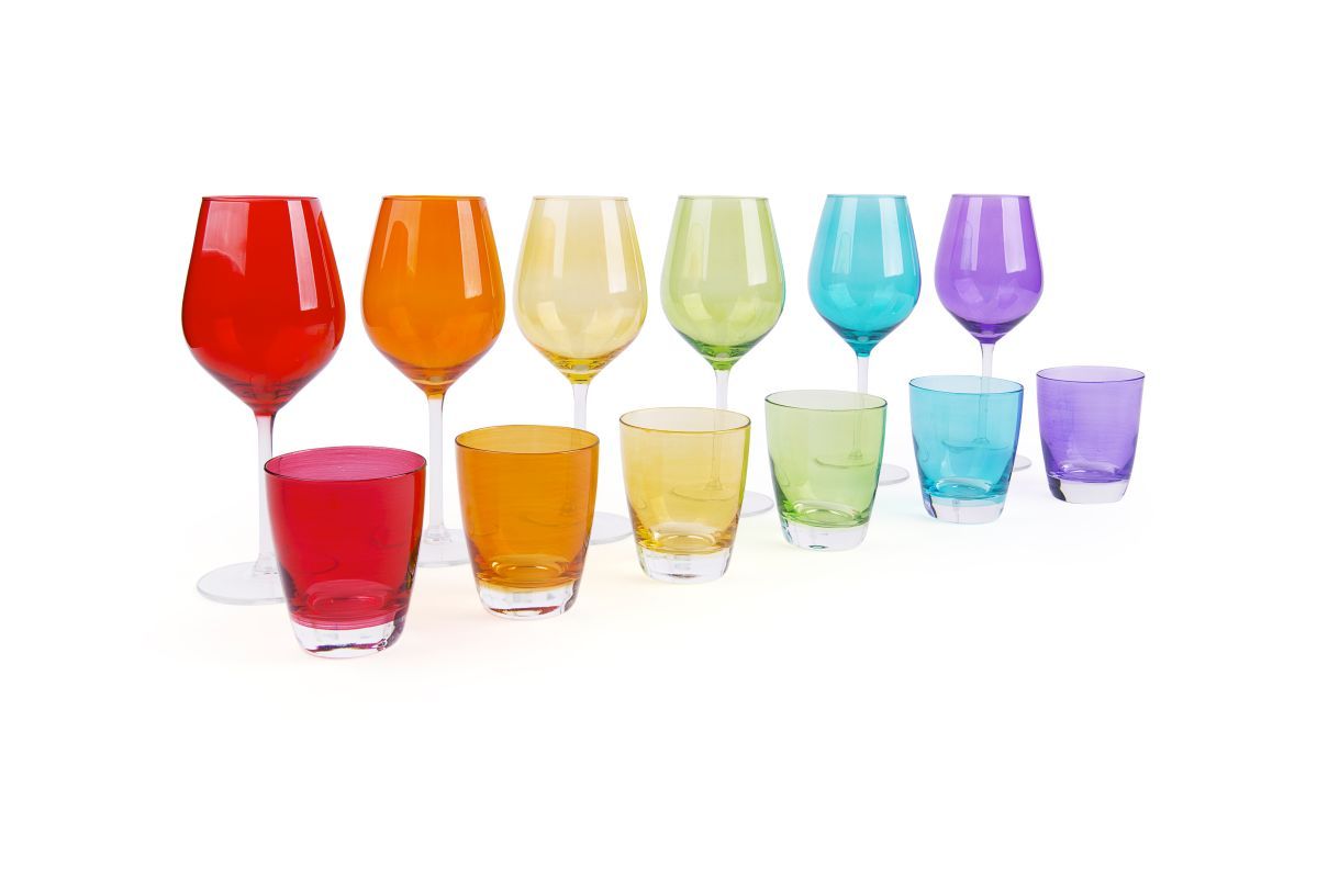 Calici vino e bicchieri acqua, 12 pezzi, multicolore