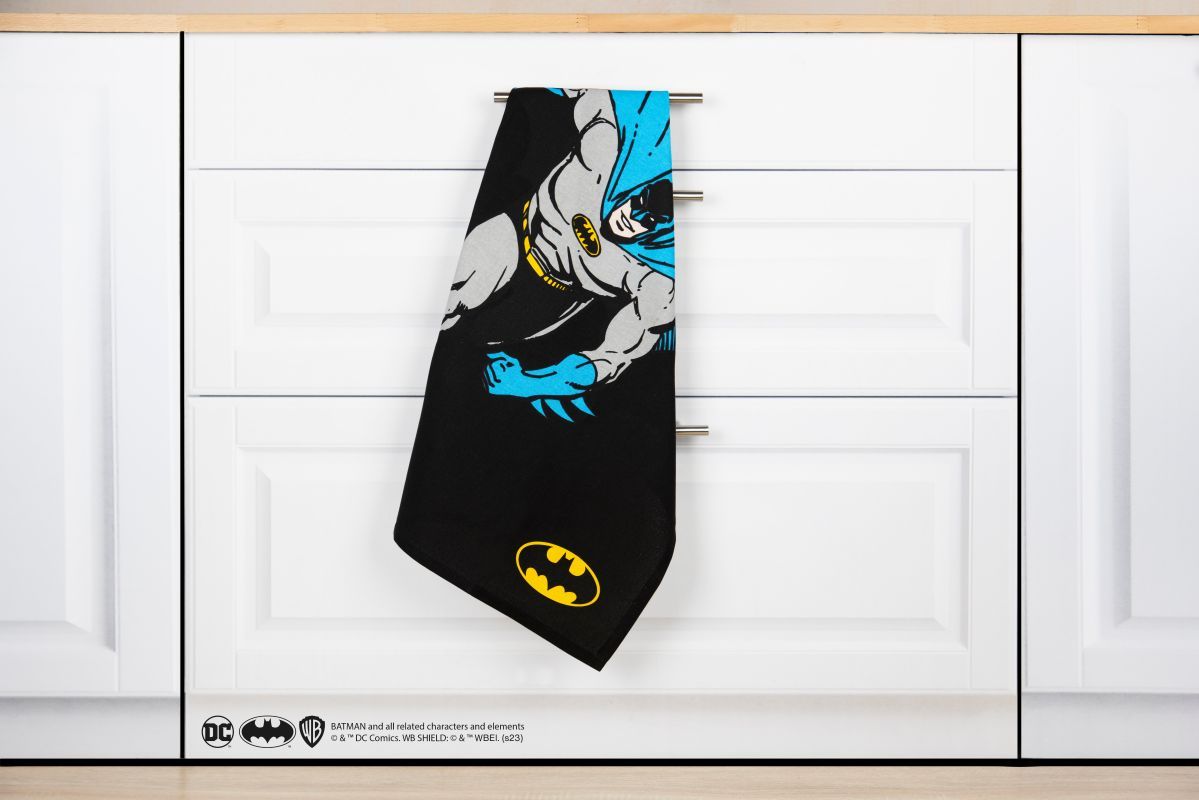 Il canovaccio di Batman si presta bene come utilizzo anche come tovaglietta per uno snack veloce.