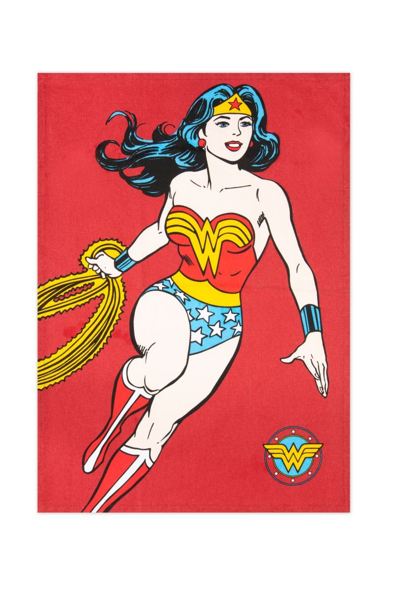 Il canovaccio Wonder Woman della collezione originale Super Eroi di Excélsa è 100% cotone 200 gr/m2 con stampa multicolore e l'originale fantasia su fondo rosso. Lavabile in lavatrice a 40°. Dimensioni 50x70 cm.