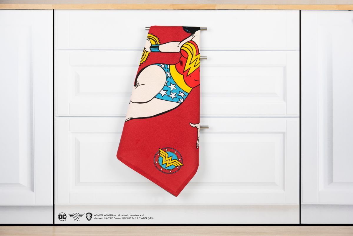 Il canovaccio di Wonder Woman si presta bene come utilizzo anche come tovaglietta per uno snack veloce.