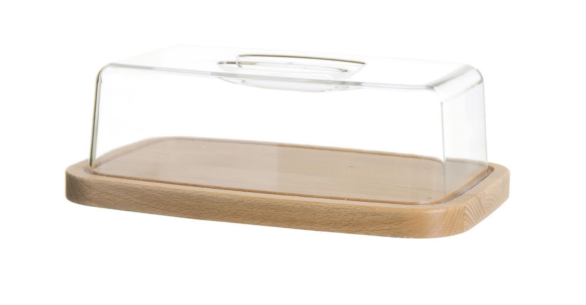 Minimalista e perfetto anche per servire i formaggi a tavola Real Wood di Excélsa è il copriformaggio con base in faggio e coperchio in plastica trasparente a forma rettangolare.