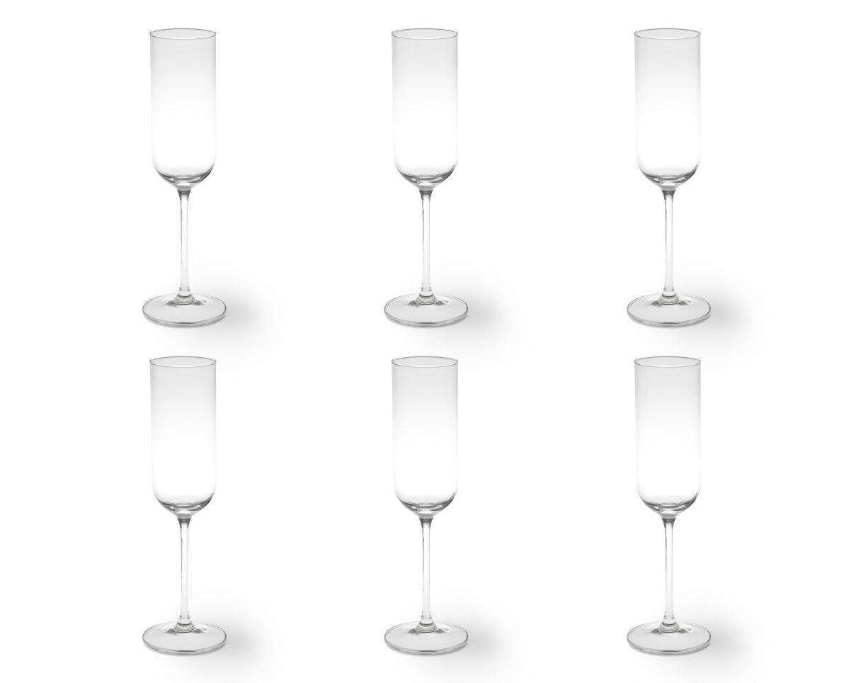 Nordic il flute bollicine da 210 ml in set da 6 pezzi. Stelo lungo, coppa cilindrica, in vetro trasparente soffiato. Perfetti per la tua tavola, anche di tutti i giorni!