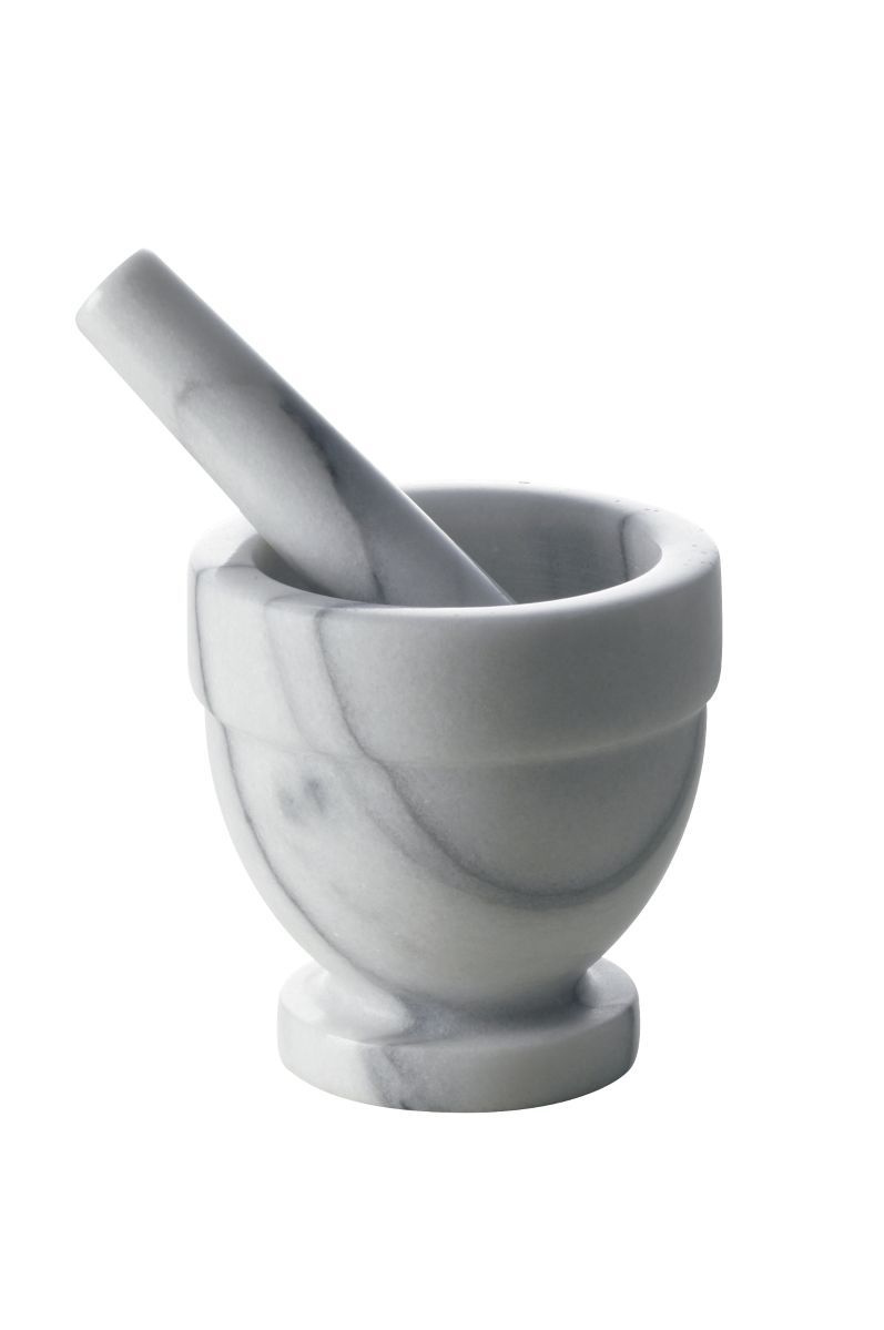 Il mortaio Pesto di Excélsa è interamente in marmo. La forma ergonomica e la resistenza del suo materiale rendono il pestello di facile presa e ottima aderenza in fase di uso.