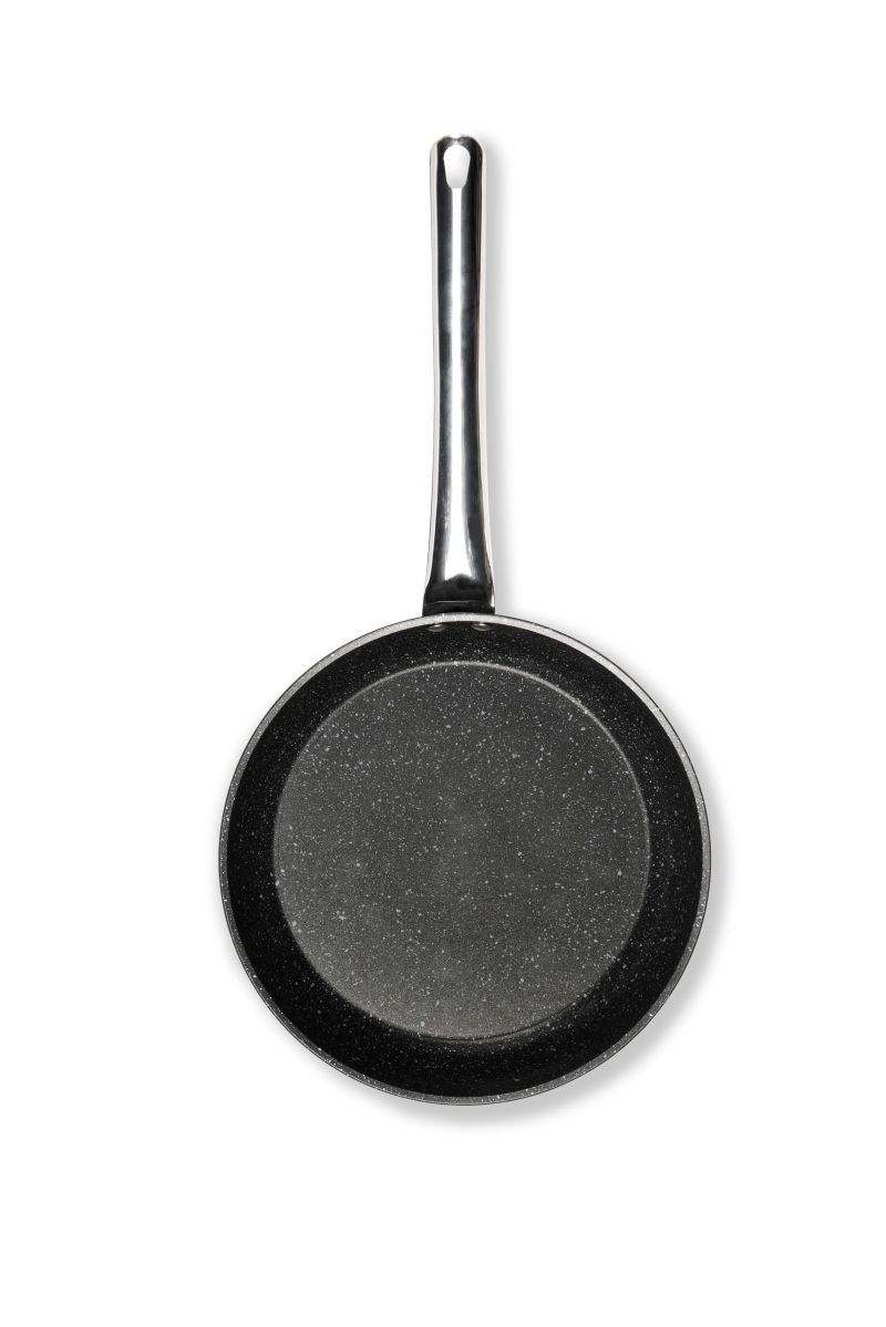 La padella Five Stars ha un diametro di 24 cm. Il manico è in acciaio 18/0 rivettato al corpo della padella (rivetti in alluminio). Altezza della parte funzionale 4 cm.