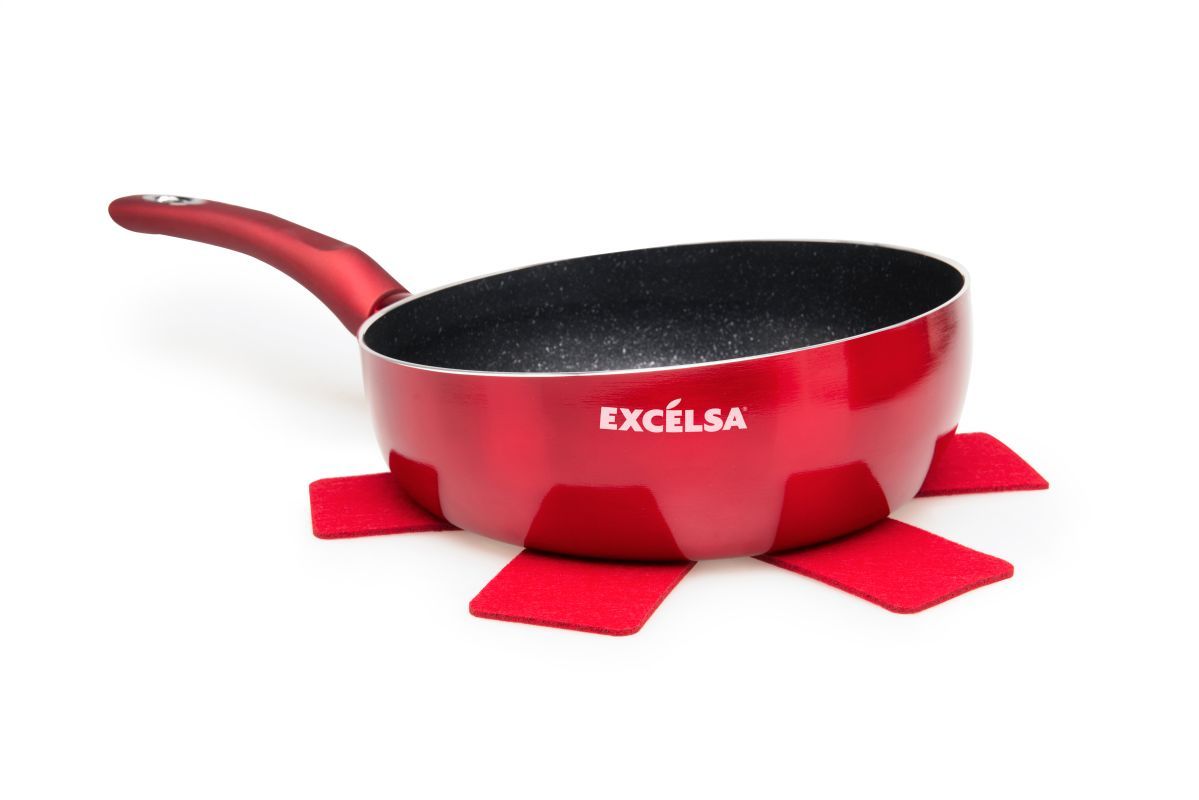 La padella saltapasta Phoenix di Excélsa da 26 cm è riconoscibile dal caratteristico colore rosso acceso. In alluminio forgiato alto spessore con manico soft touch per una presa sicura è antiaderente e adatta per l'induzione e la maggior parte dei piani cottura in commercio.