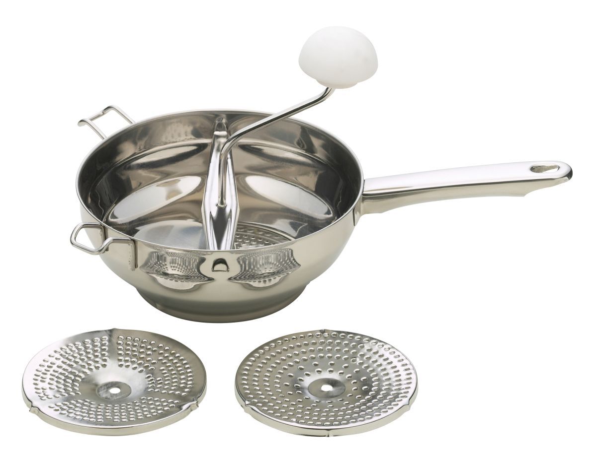Lesto di Excélsa è il passaverdura in acciaio inox di diametro 20 cm. Inclusi nella confezione ci sono 3 dischi intercambiali di dimensioni diverse e con fori più grandi o più piccoli per ottenere consistenze differenti in base ai propri gusti e utilizzi in cucina.