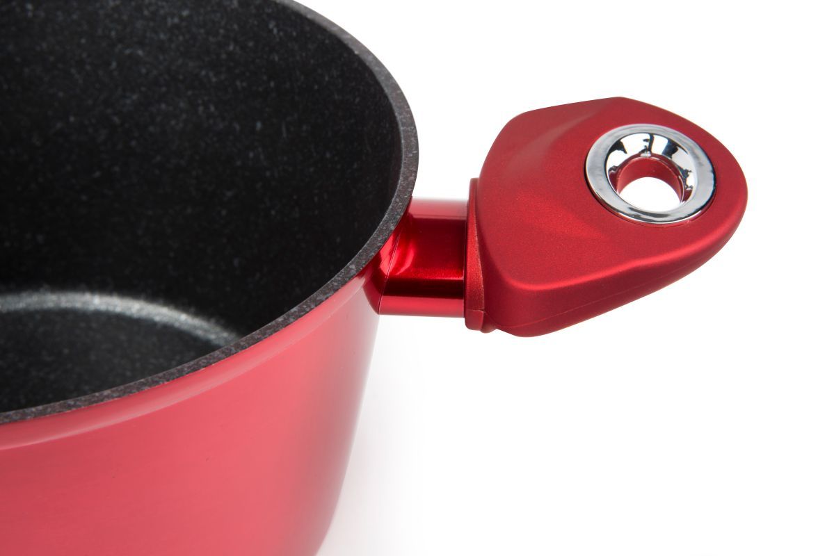 La casseruola Phoenix di Excélsa da 20 cm è riconoscibile dal caratteristico colore rosso acceso. In alluminio forgiato alto spessore con manico soft touch per una presa sicura è antiaderente e adatta per l'induzione e la maggior parte dei piani cottura in commercio.
