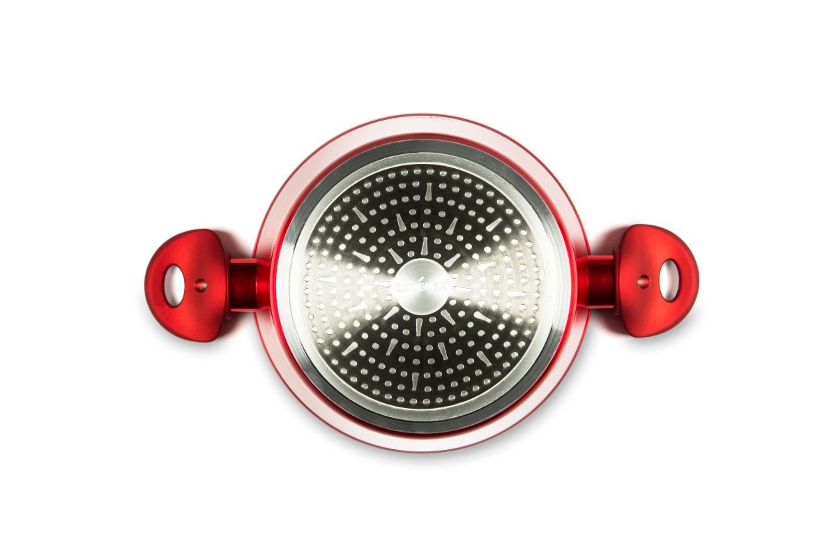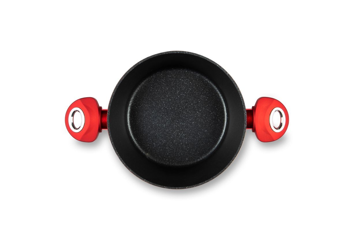 La casseruola Phoenix di Excélsa da 24 cm è riconoscibile dal caratteristico colore rosso acceso. In alluminio forgiato alto spessore con manico soft touch per una presa sicura è antiaderente e adatta per l'induzione e la maggior parte dei piani cottura in commercio.