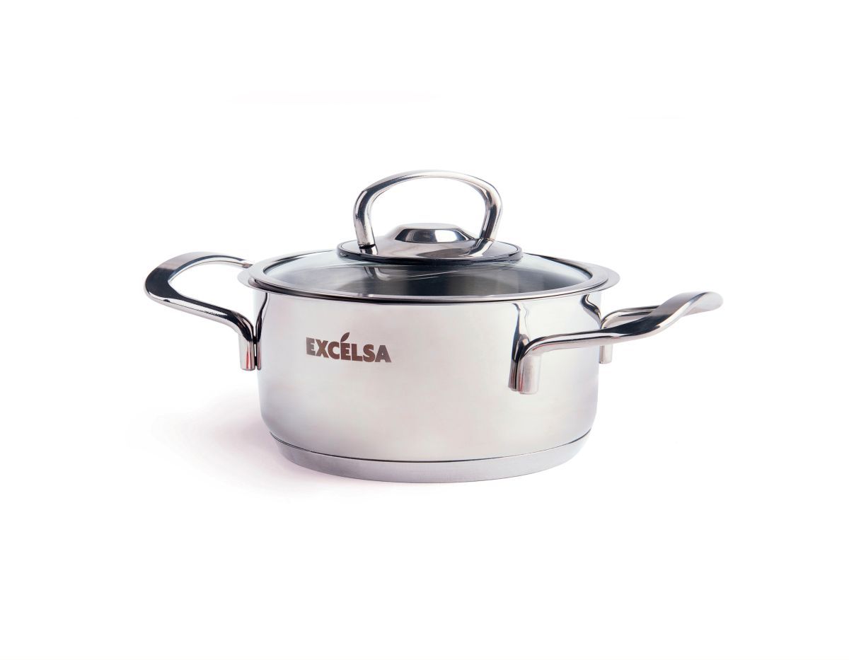 La casseruola Jazz Cook di Excélsa da 16 cm con coperchio in vetro è ideale per cucinare le tue ricette preferite. Grazie al triplo fondo e alla sua struttura in acciaio inox 18/10 la casseruola distribuisce il calore uniformemente dal basso verso l'alto.