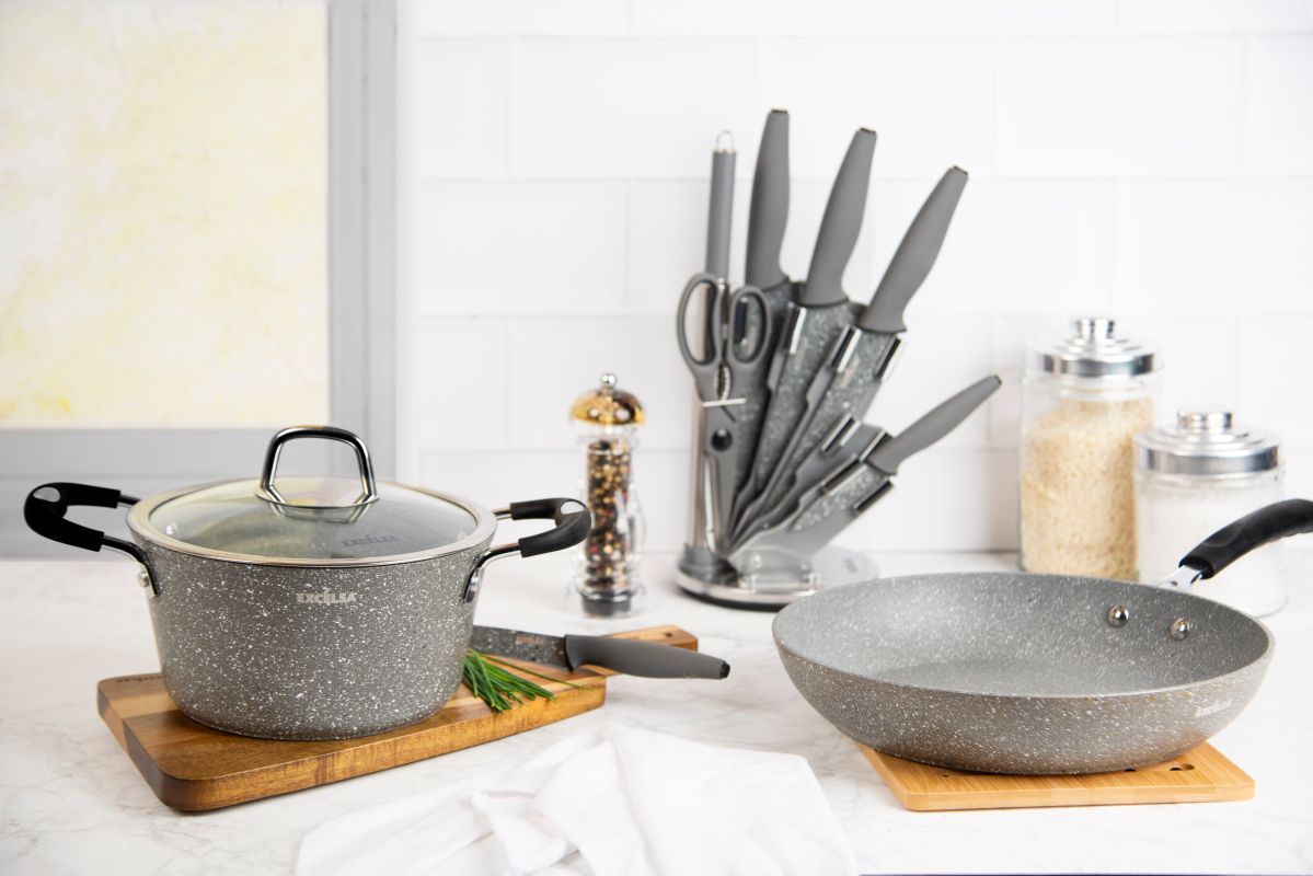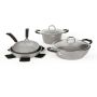 Pentole e padelle, 6 pezzi, antiaderente, effetto pietra
