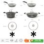 Questa batteria di pentole fa parte della collezione Forn-OK la serie che può essere posta anche in forno tradizionale oltre che sulla maggior parte dei piani cottura in commercio.