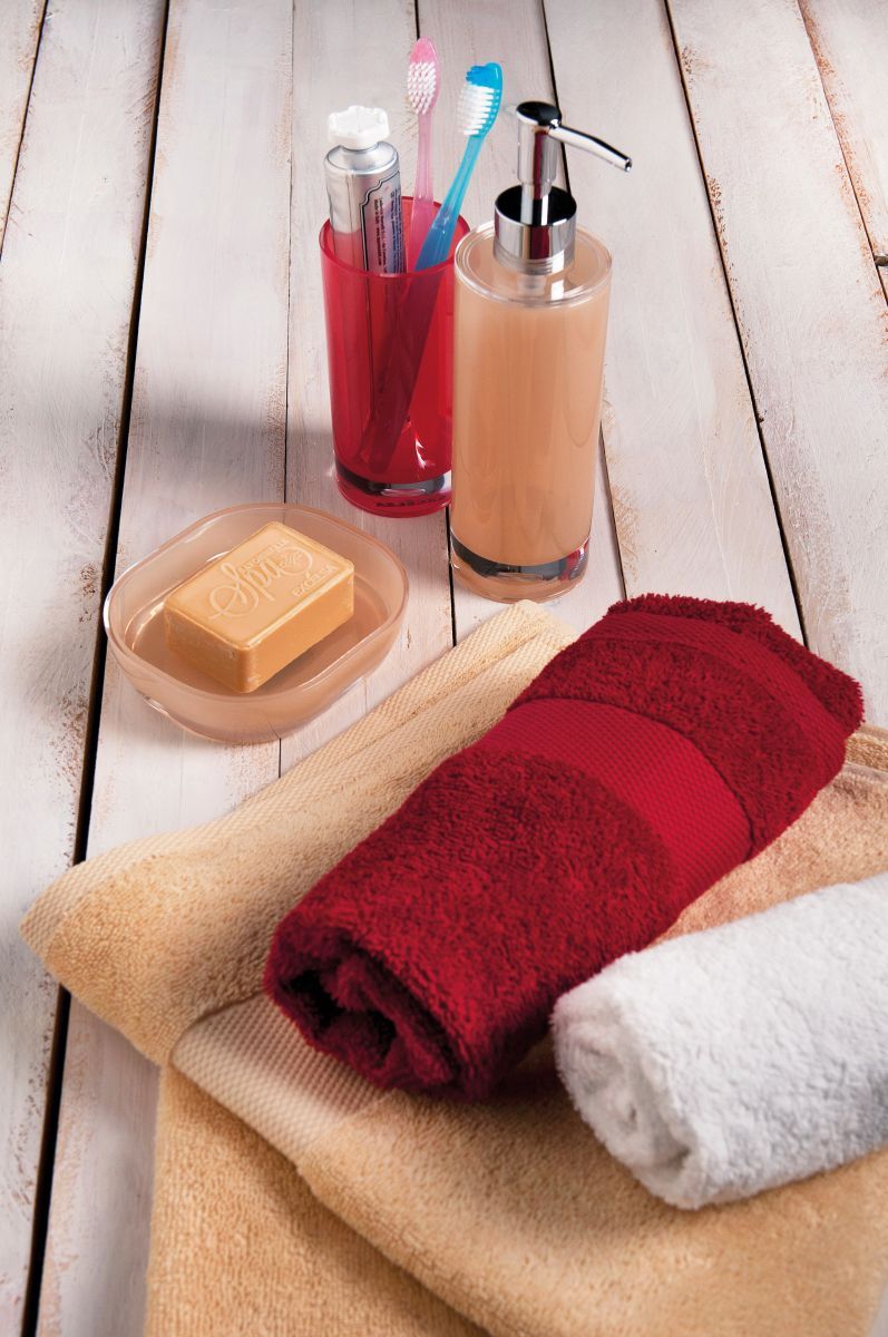 Coordina il tuo bagno con una serie di prodotti tutti dello stesso colore! Scegli il portaspazzolini e il portasapone liquido da ml 300 in colore rosso. Materiale plastico restistente agli urti, coordinabile con gli altri accessori da bagno della collezione SPA (portasaponetta, portascopino WC, cestini e asciugamani).