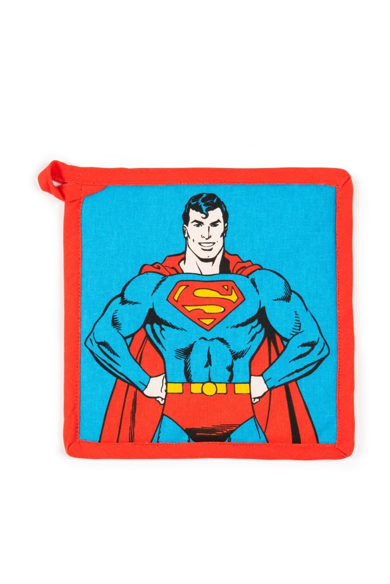 La presina Superman della collezione Super Eroi di Excélsa è un tocco di colore e allegria in cucina. Di grandi dimensioni, 20x20 cm, la presina protegge le tue mani nel caso in cui tu debba prendere una pentola, una pirofila o un coperchio ancora caldi.