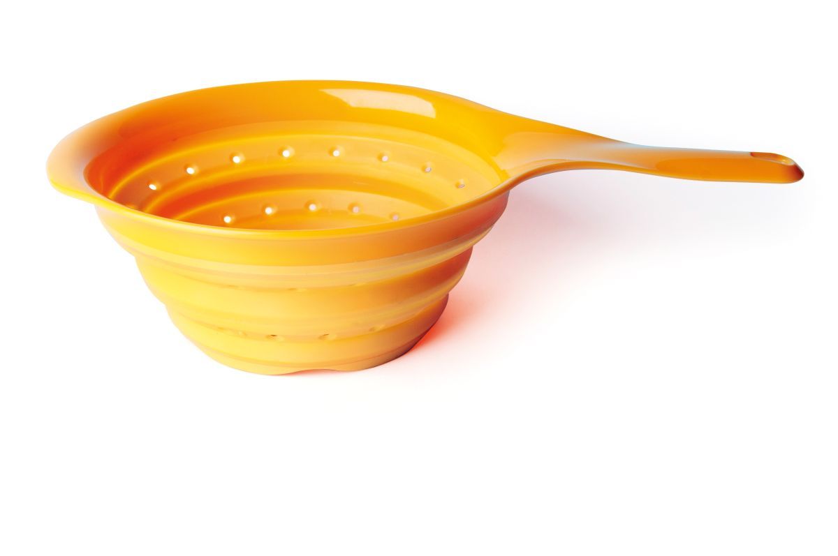 Vivace in colore arancione lo scolariso Concentric ha un diametro di 19,5 cm. Il pratico manico allungato facilita la presa laterale.