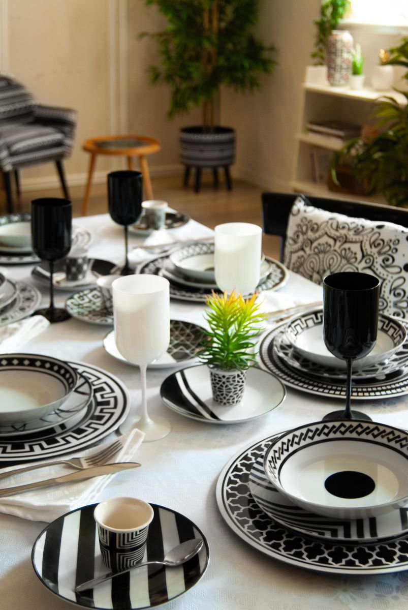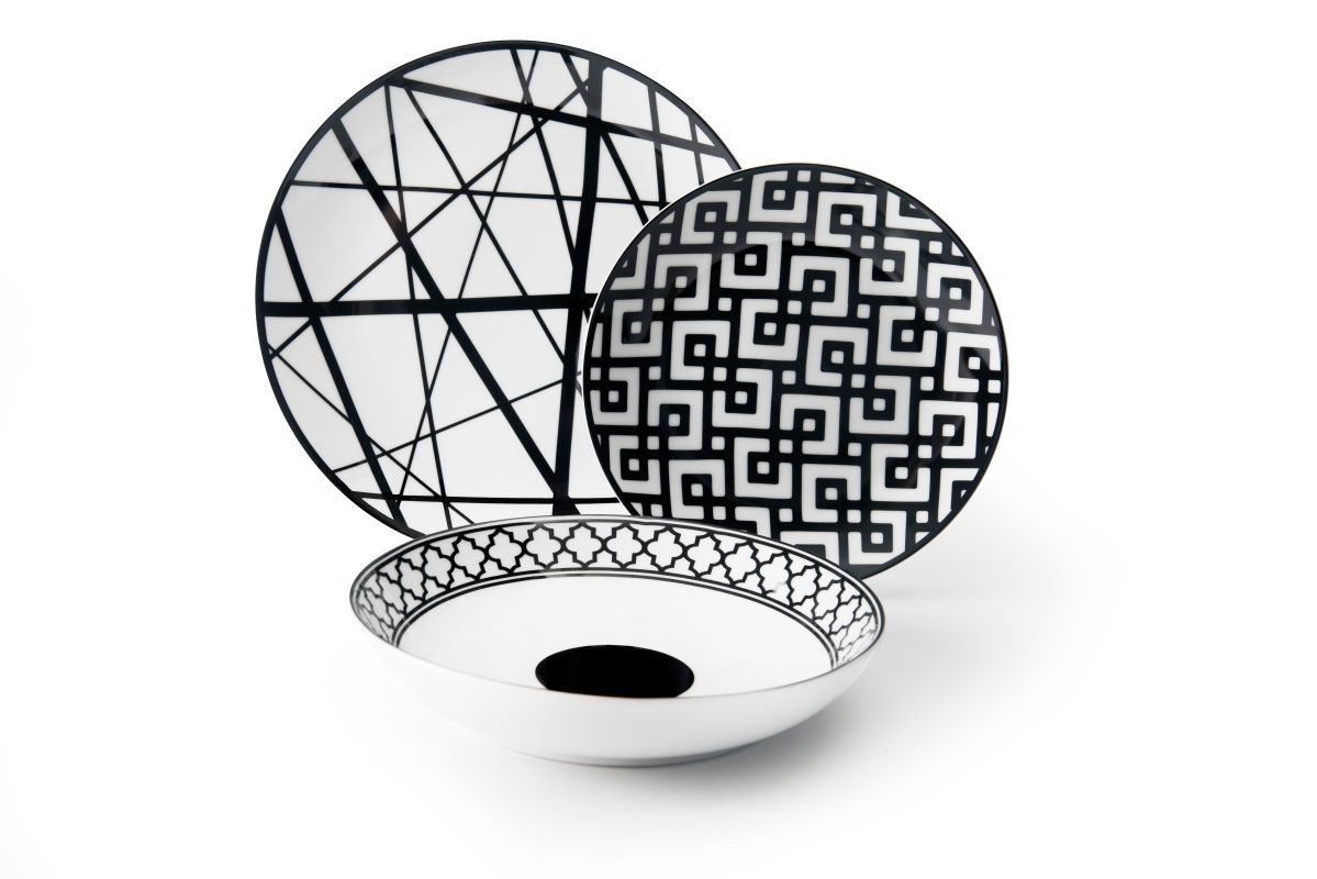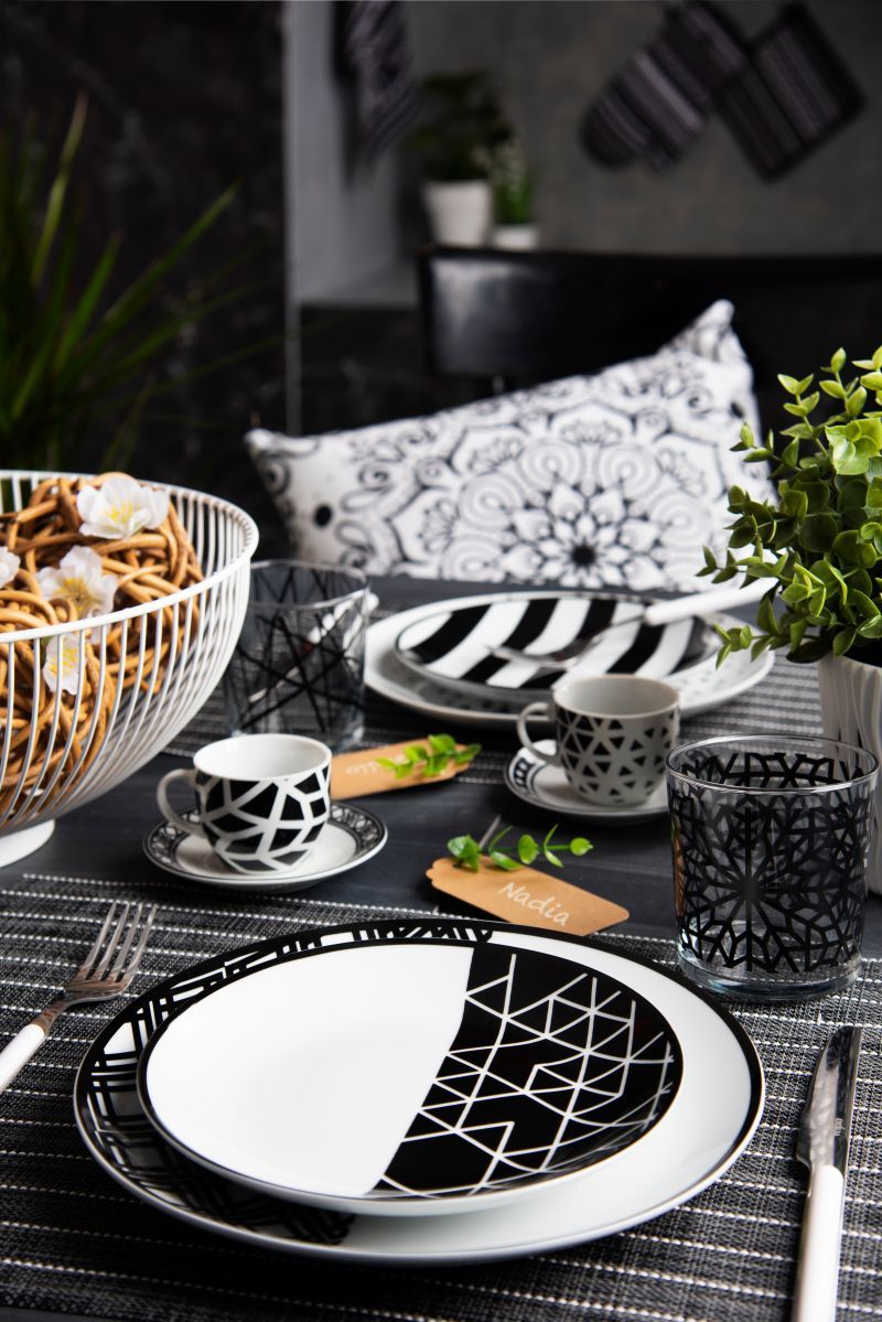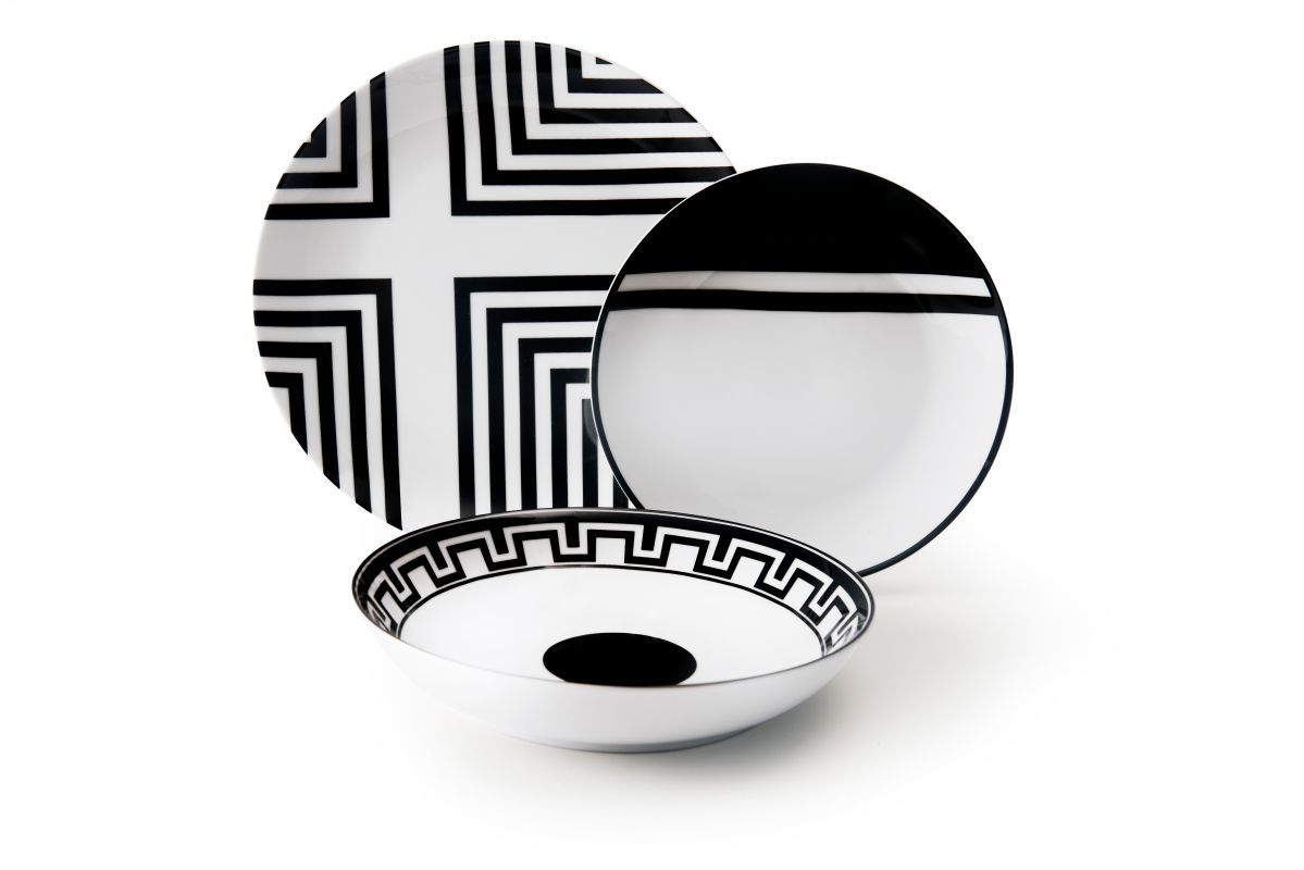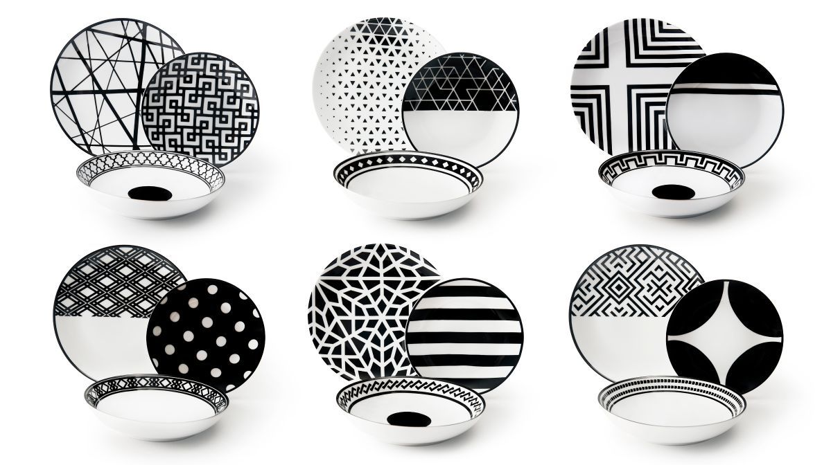 Un servizio mix and match da 18 pezzi tutto giocato sull’accoppiata vincente tra il bianco e il nero: una tendenza evergreen, da sfoggiare in ogni occasione.
