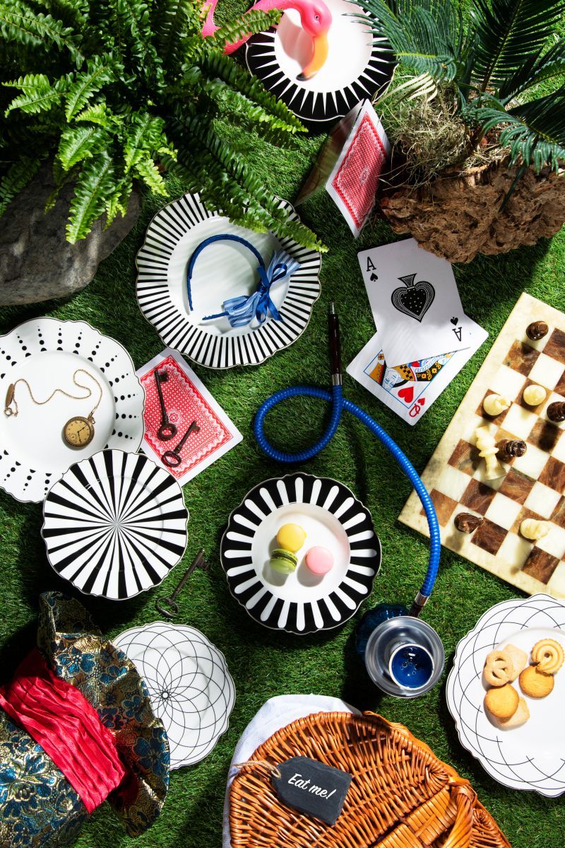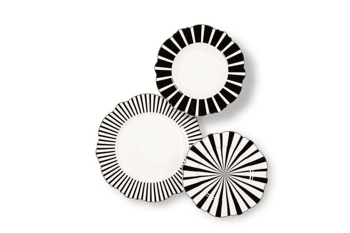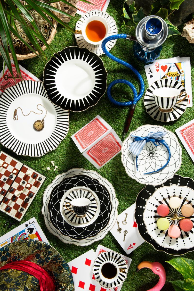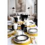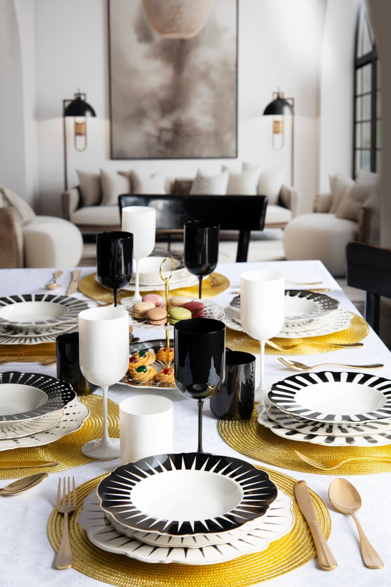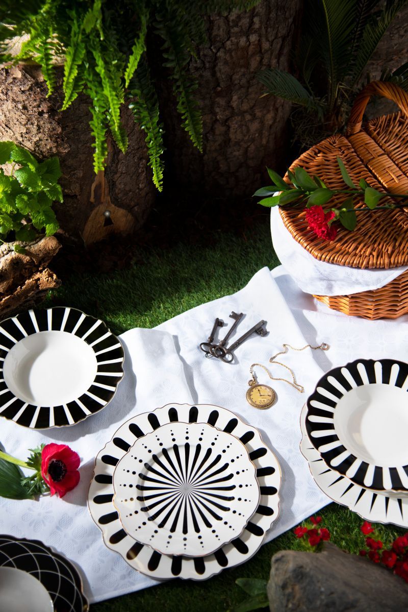Realizzati in new bone china e stampati in nero full decal, i piatti di questa collezione presentano un raffinato filo dorato sul bordo, creando un'atmosfera ipnotica e barocca allo stesso tempo. Questa combinazione di eleganza e immaginazione rende la Collezione Alice di Excélsa un must-have per le amanti dello stile chic e senza tempo.