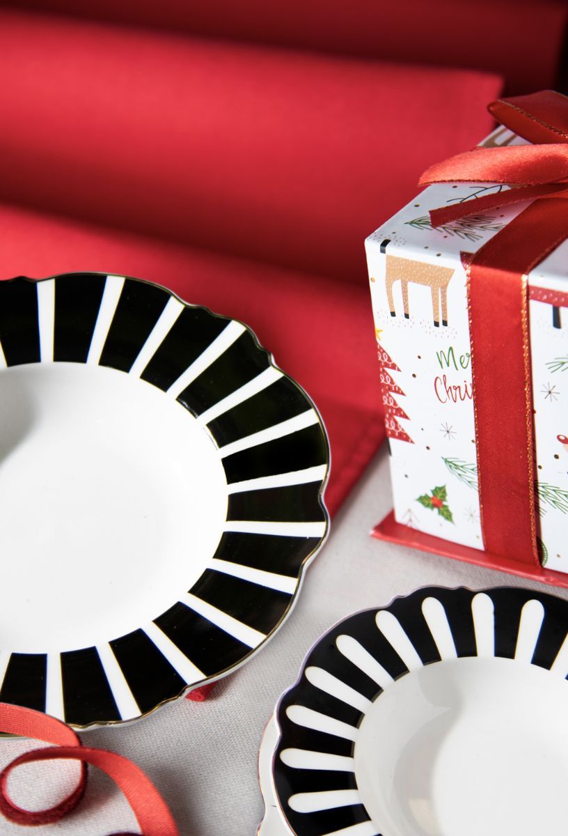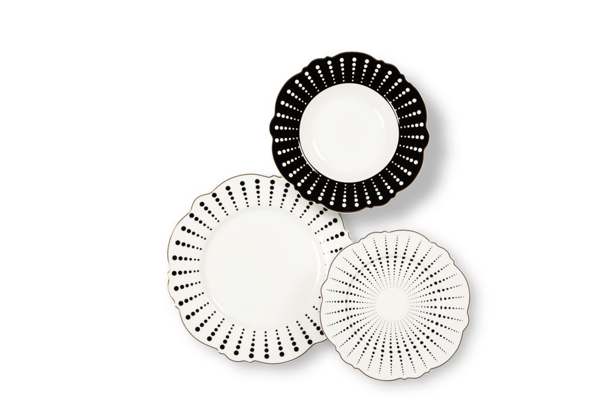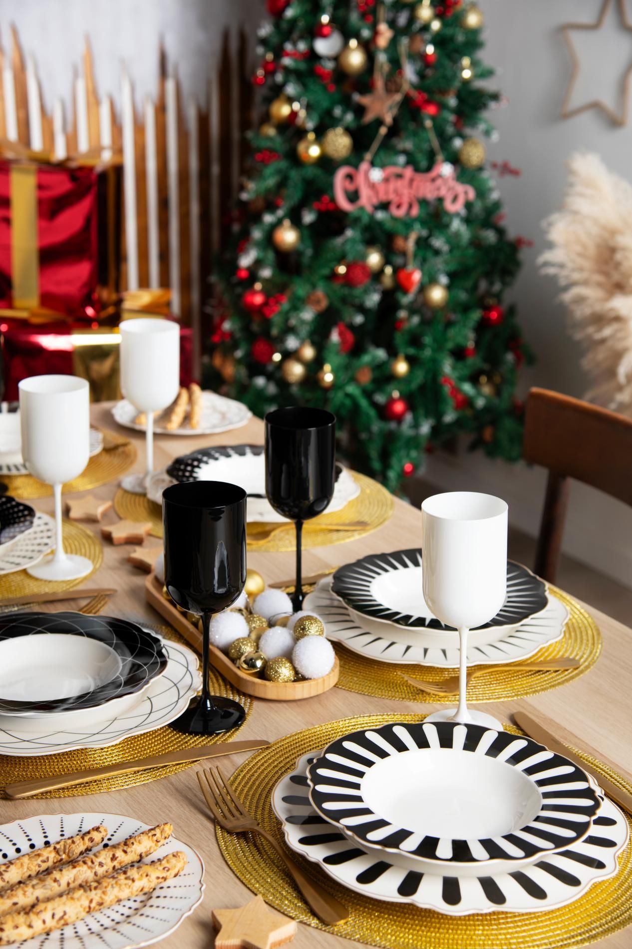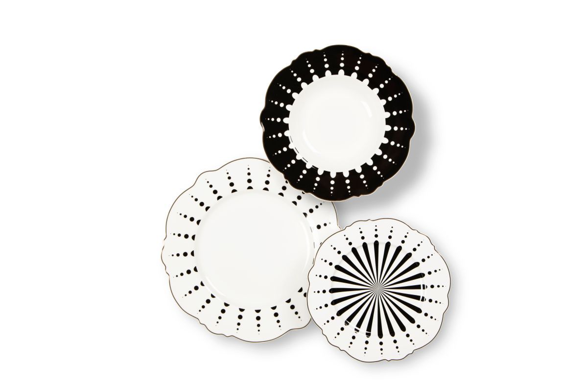 Realizzati in new bone china e stampati in nero full decal, i piatti di questa collezione presentano un raffinato filo dorato sul bordo, creando un'atmosfera ipnotica e barocca allo stesso tempo. Questa combinazione di eleganza e immaginazione rende la Collezione Alice di Excélsa un must-have per le amanti dello stile chic e senza tempo.
