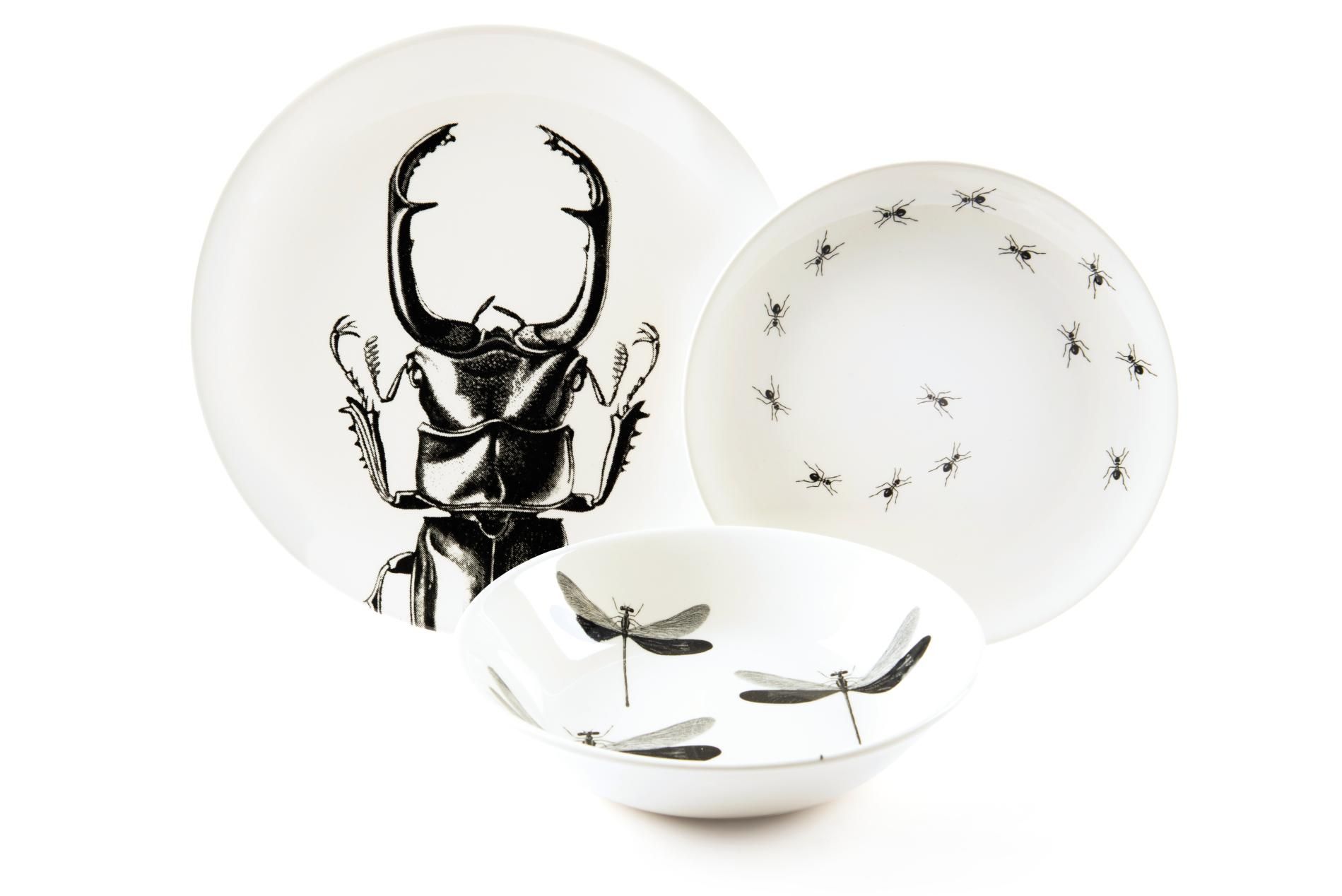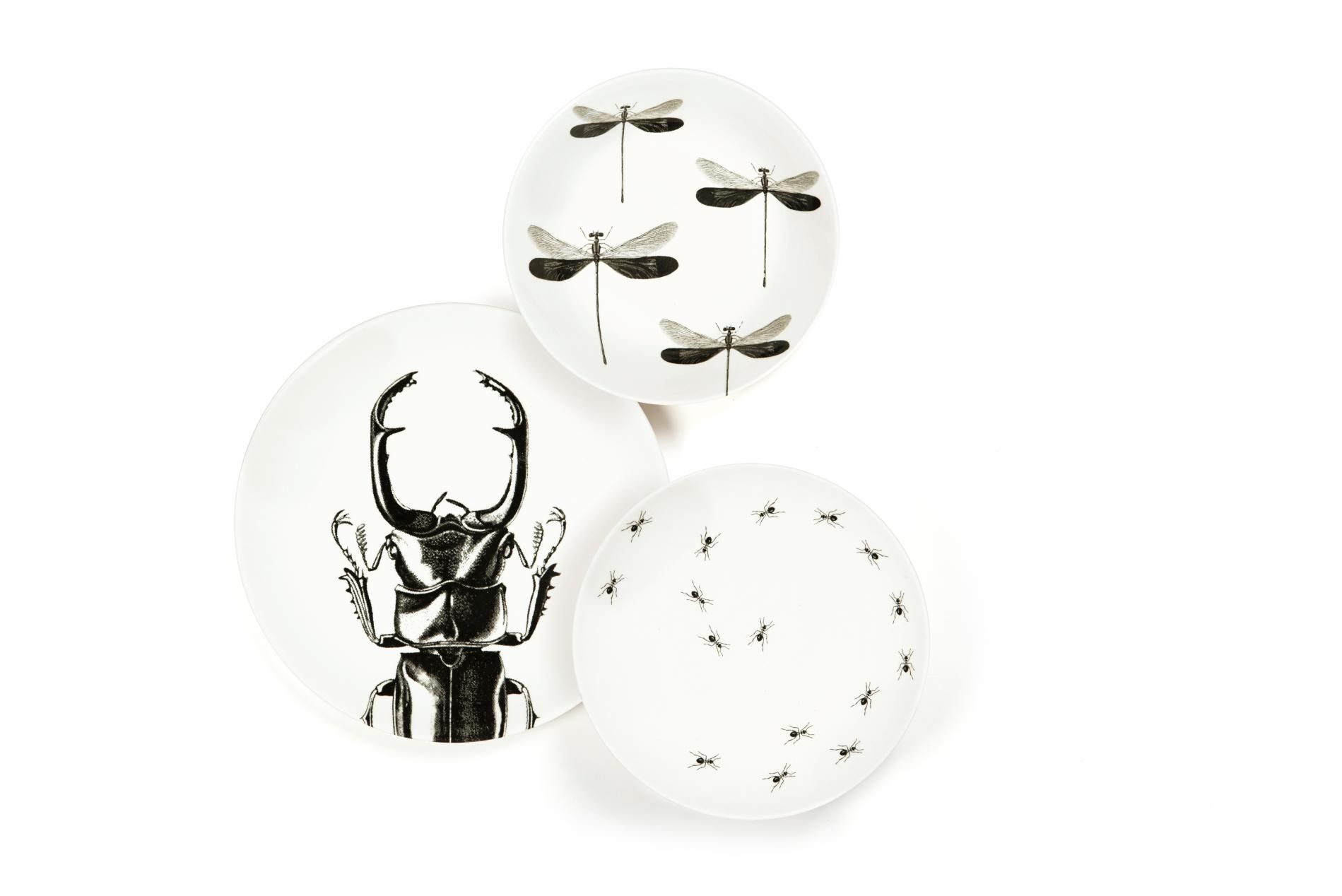 Servizio piatti, nero, insetti, ceramica, 3 pezzi