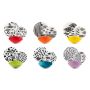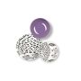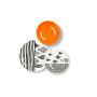 I piatti piani e i piatti frutta sono in porcellana con decorazione. I piatti fondi sono realizzati in stoneware monocolore: rosso, arancione, giallo, verde, azzurro e viola.