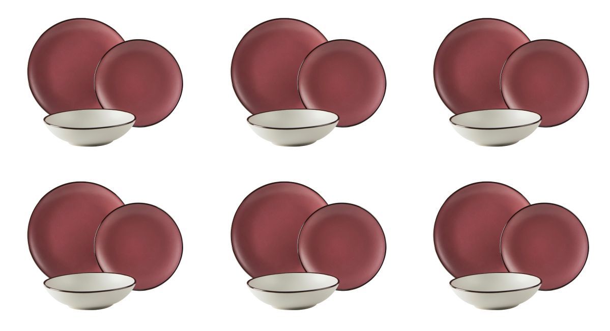 Servizio piatti, rosa/grigio, stoneware, 18 pezzi