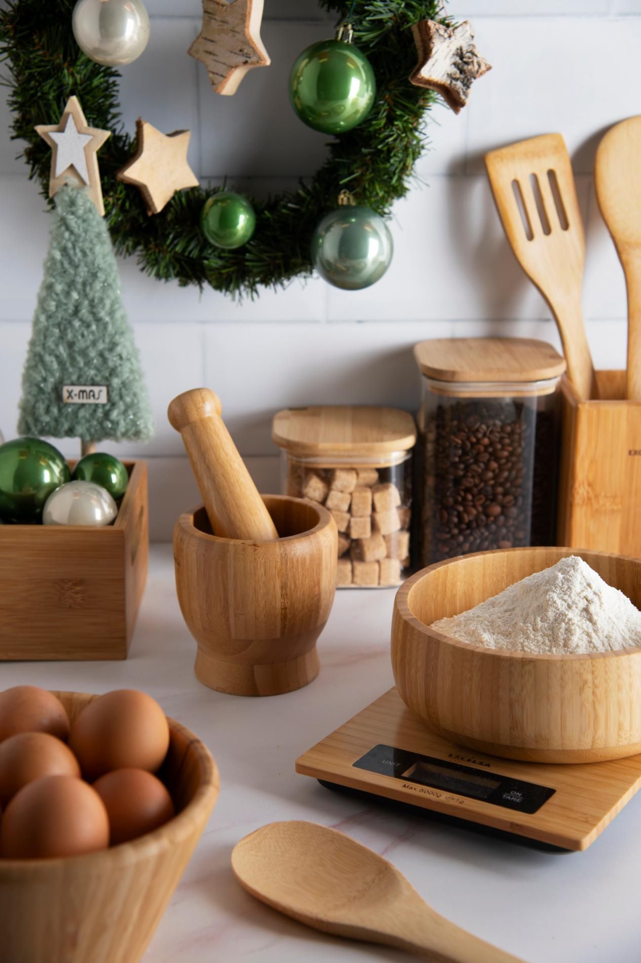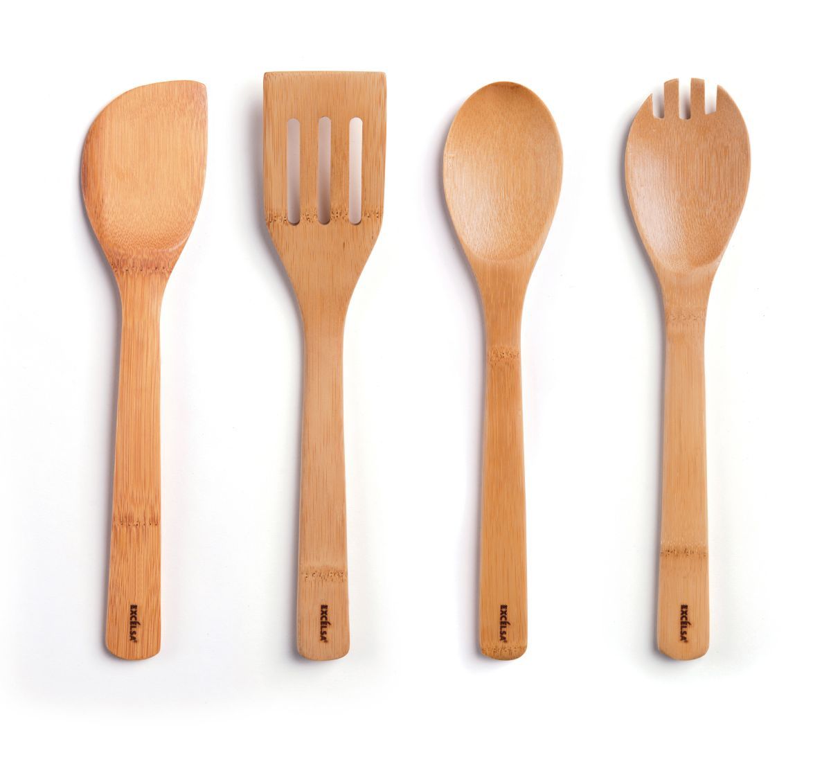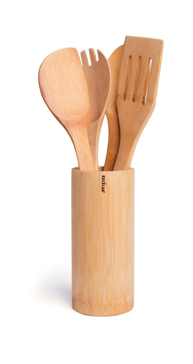 Set 4 utensili da cucina con portautensili, bambù