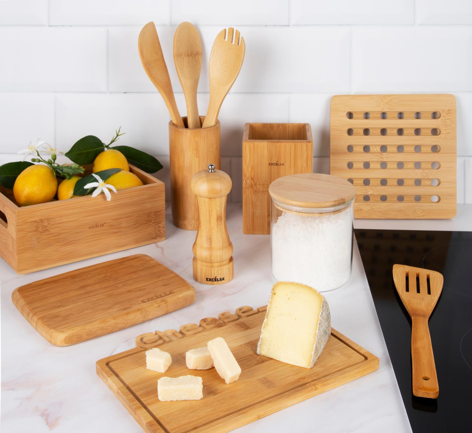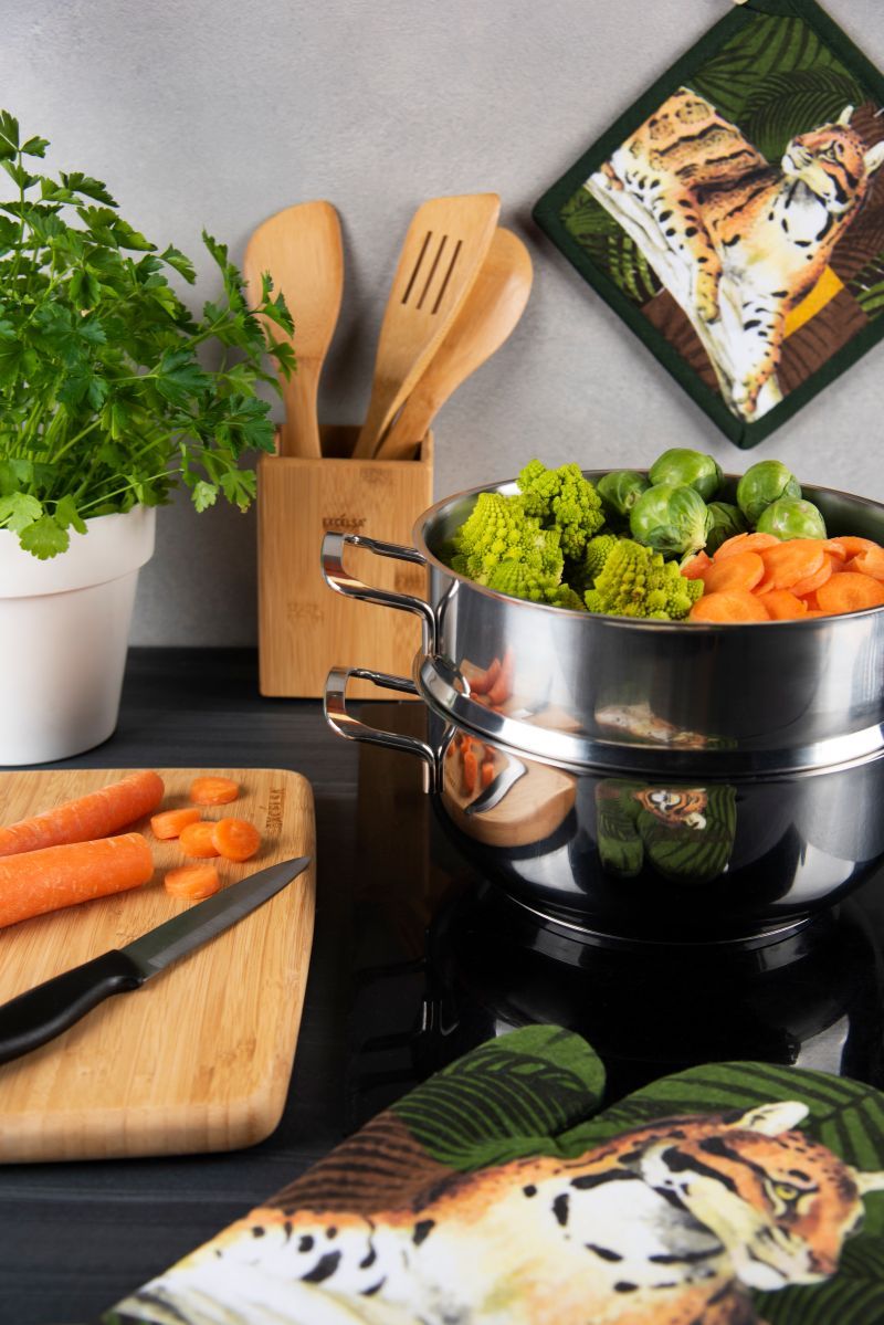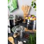 Eco Living è il set da 5 pezzi con gli utensili più comunemente usati in cucina per mescolare, raccogliere, sollevare. Il design dei prodotti è moderno e minimale in bambù naturale con porta utensili capace di raccogliere in modo ordinato tutti gli articoli.
