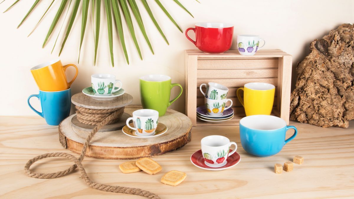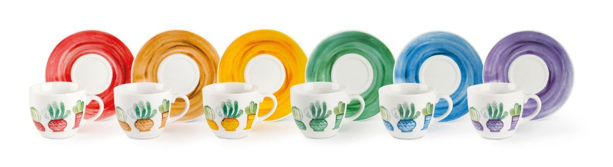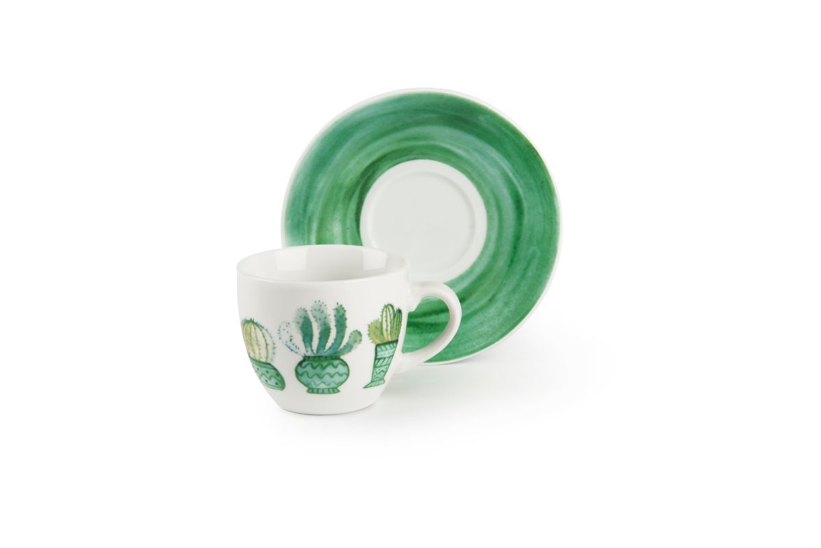 Le tazzine per caffè espresso Cactus di Excélsa sono vendute in set da 6 pezzi con piattino incluso.