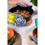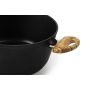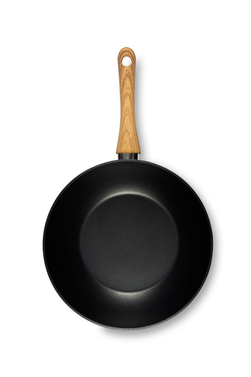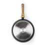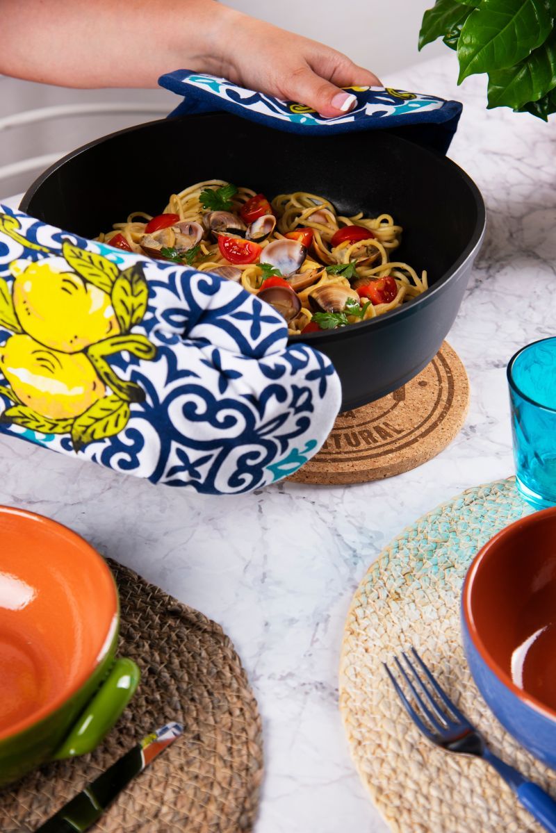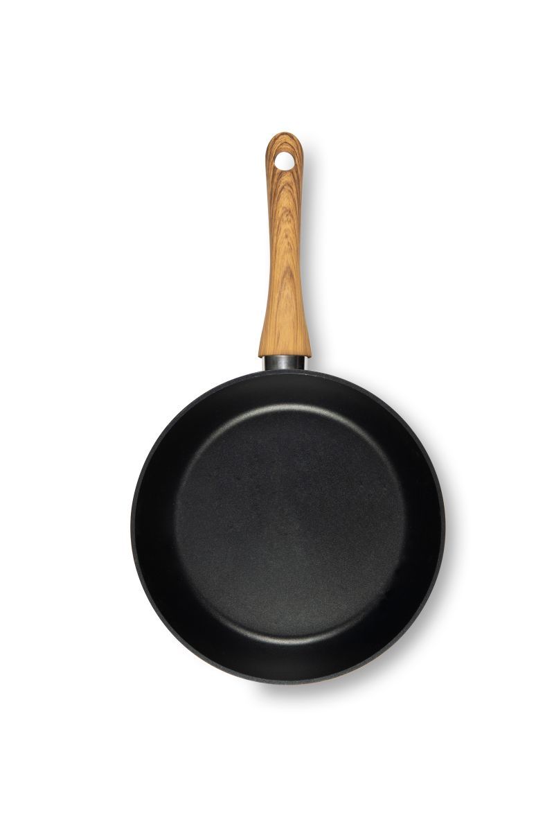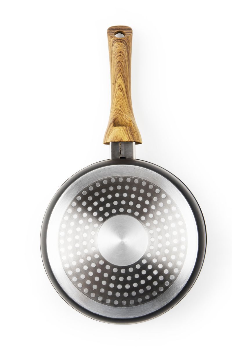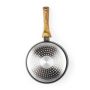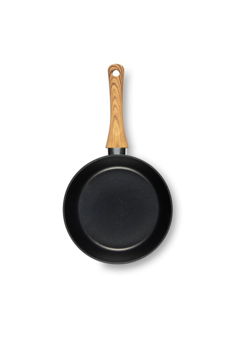 Pratika di Excélsa è la batteria da 9 pezzi bella alla vista e piacevole al tatto: in alluminio forgiato per garantire resistenza e uniformità in cottura, nickel free, con manici in bachelite soft touch con effetto legno, coperchi in vetro con valvola di sfiato.