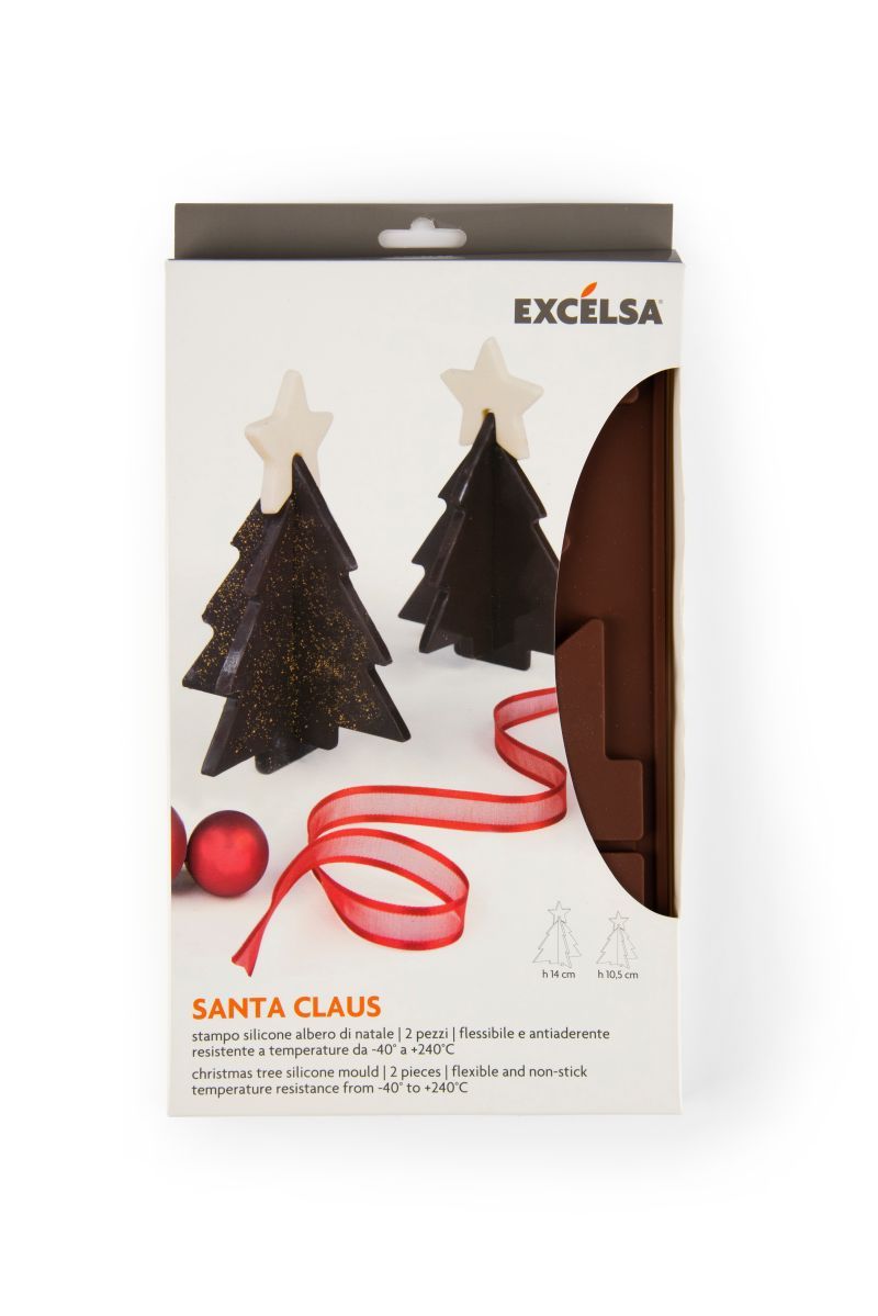 Santa Claus è lo stampo in silicone a forma di albero di natale resistente alle alte temperature, flessibile e antiaderente. La sua tenuta è garantita da a -40°C a +240°C.