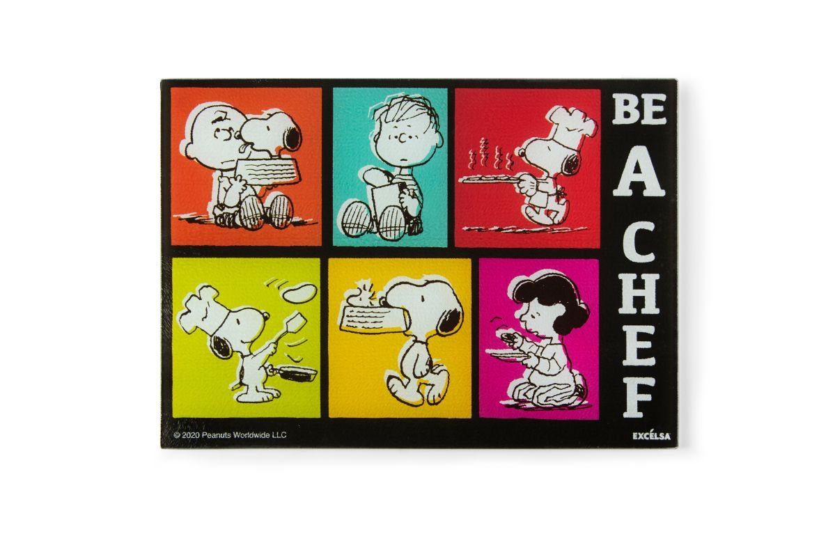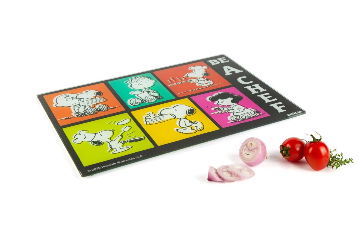 "Be a chef" in compagnia dei personaggi della gang Peanuts e dell'igienico tagliere in vetro.
