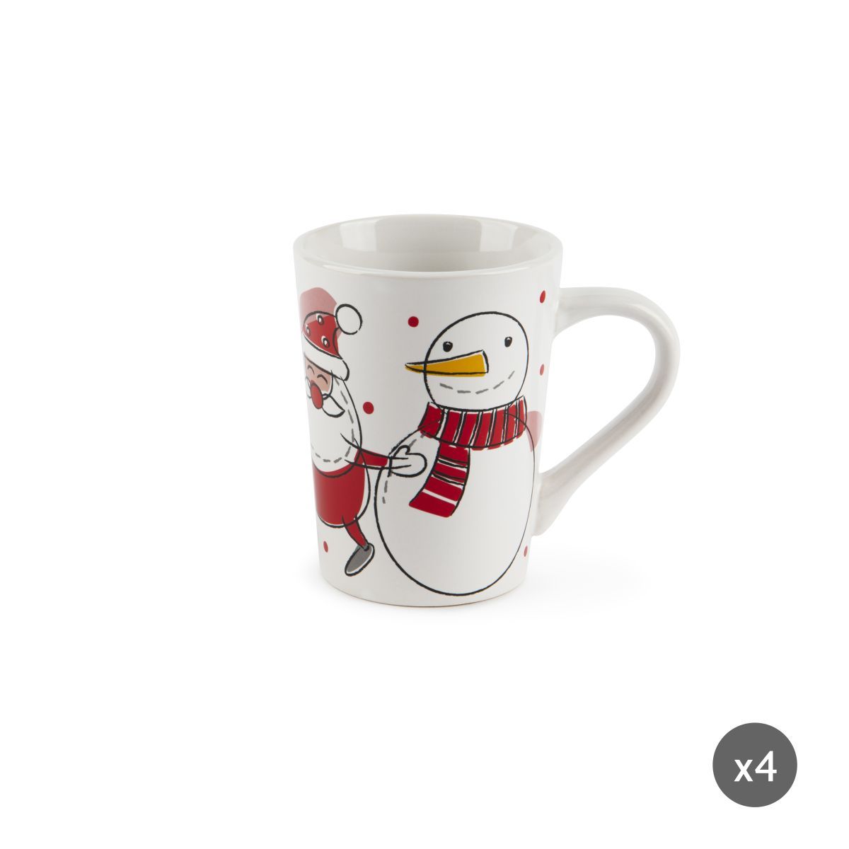 Il set da 4 pezzi di tazze tipo mug è personalizzato con la fantasia natalizia Snowman di Excélsa. I simpatici Babbo Natale e il Pupazzo di Neve allieteranno le tue prime colazioni. Ogni tazza ha una capienza di 380 ml.