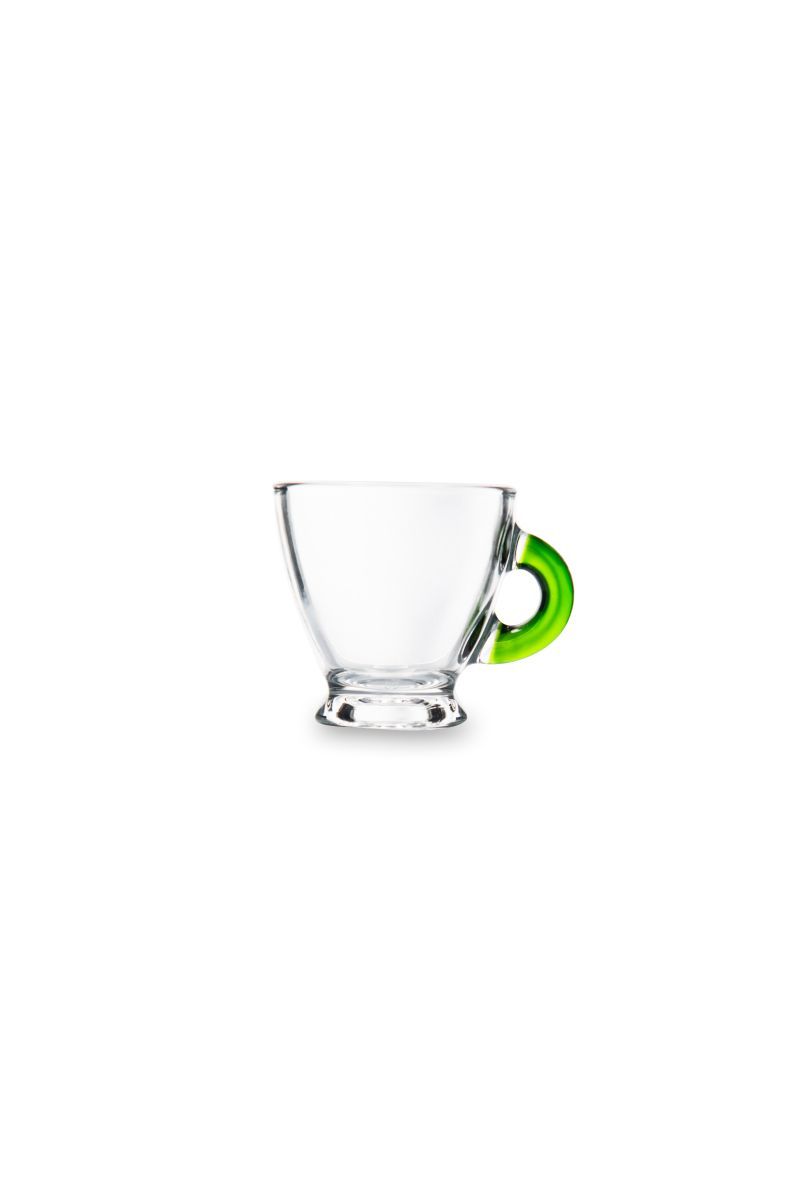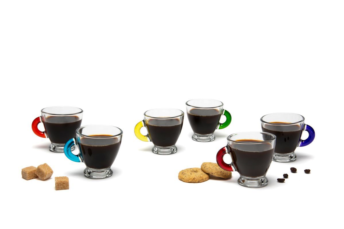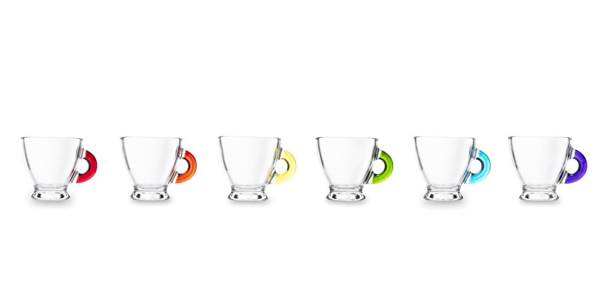 Tazzine caffè, 6 pezzi, vetro trasparente, manico colorato