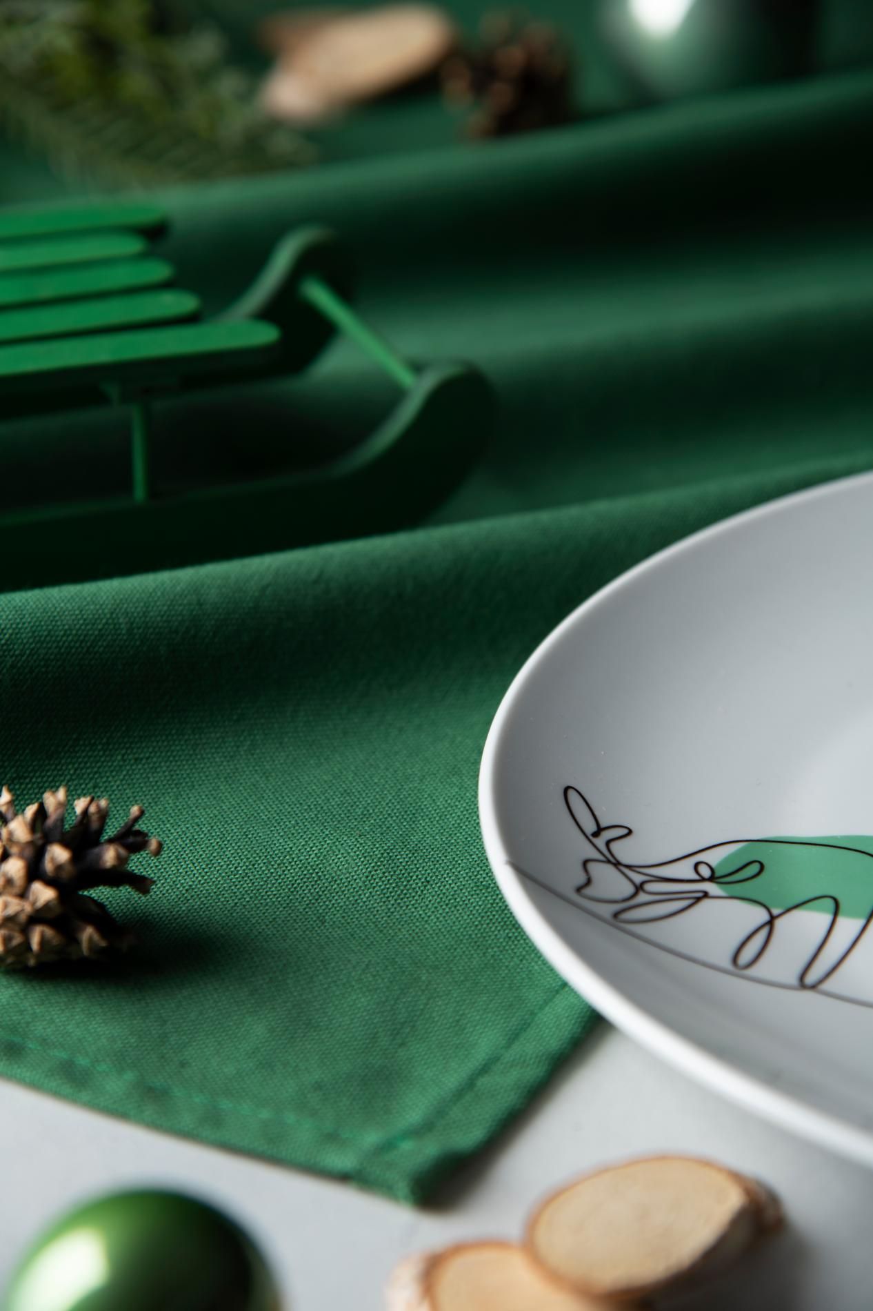 - Tovaglia rettangolare, 100% cotone, verde scuro, 140x180 cm