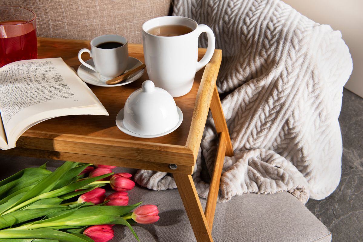 Il vassoio può essere utilizzato per servire la colazione, una merenda, per appoggiare il computer e permettere di lavorare.