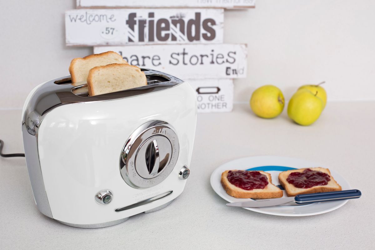 Linee smussate per l'ironico tostafette ad espulsione automatica Tix di Viceversa. Perfetto per dare un tocco vintage alla tua cucina con la tecnologia più all’avanguardia!