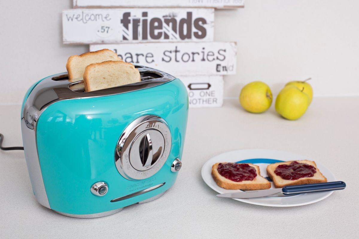Linee smussate per l'ironico tostafette ad espulsione automatica Tix di Viceversa. Perfetto per dare un tocco vintage alla tua cucina con la tecnologia più all’avanguardia!