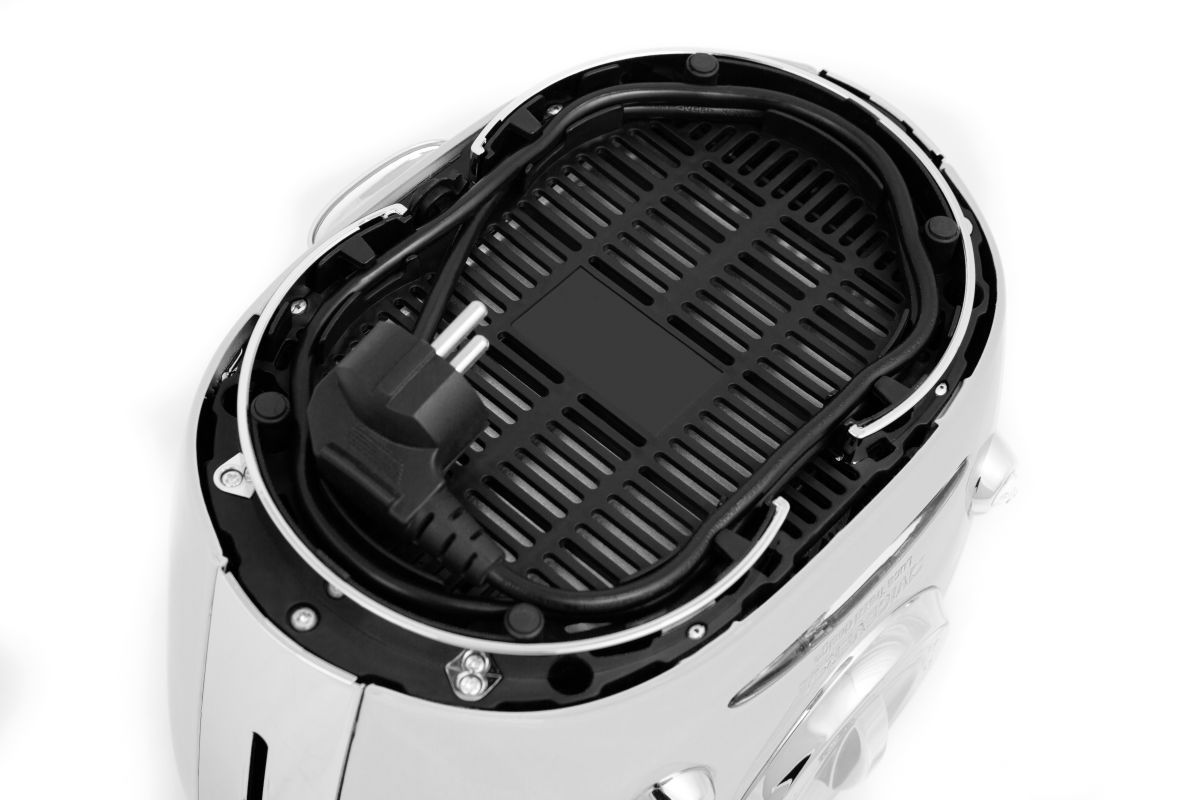 Display led per evidenziare il tempo residuo, funzione defrost e arresto immediato, vassoio raccogli briciole completamente estraibile per una facile pulizia, 2 pinze in acciaio completamente apribili per una totale libertà di utilizzo, vano raccogli cavo e piedini antiscivolo, timer con nove livelli di tostatura.
