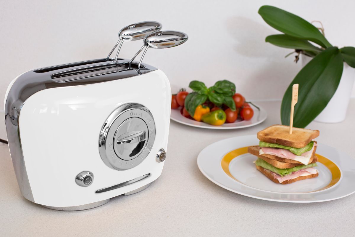 Linee smussate per l'ironico tostapane Viceversa Tix dotato di funzione defrost e 9 livelli di tostatura. Perfetto per dare un tocco vintage alla tua cucina!