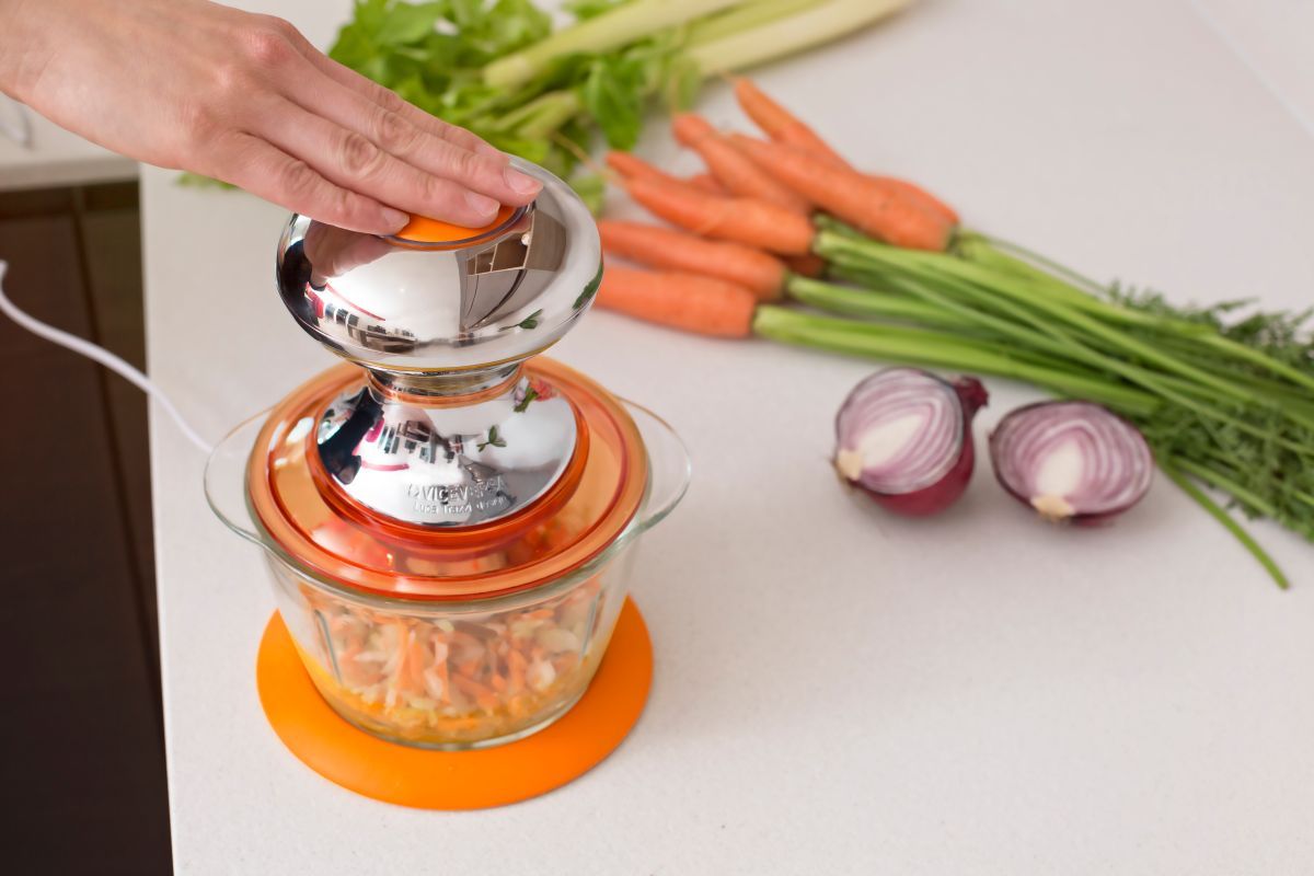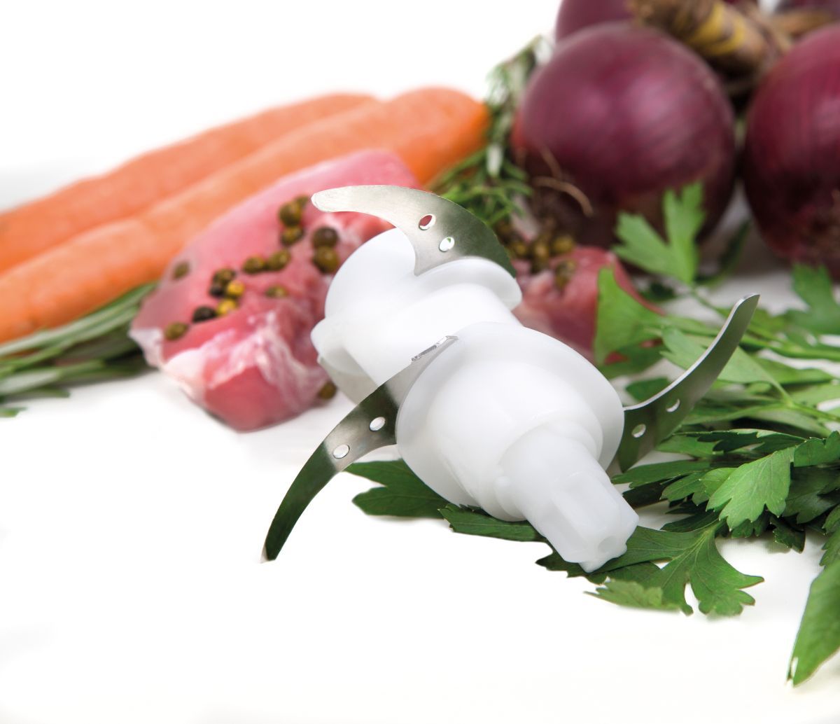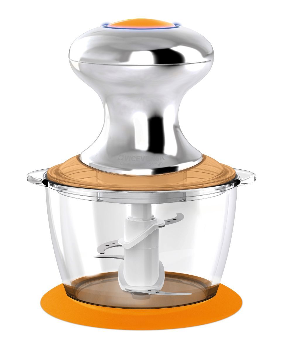 Linee moderne ed accattivanti per il tritatutto Viceversa Tix con doppia lama in acciaio inox per una tritatura omogenea.