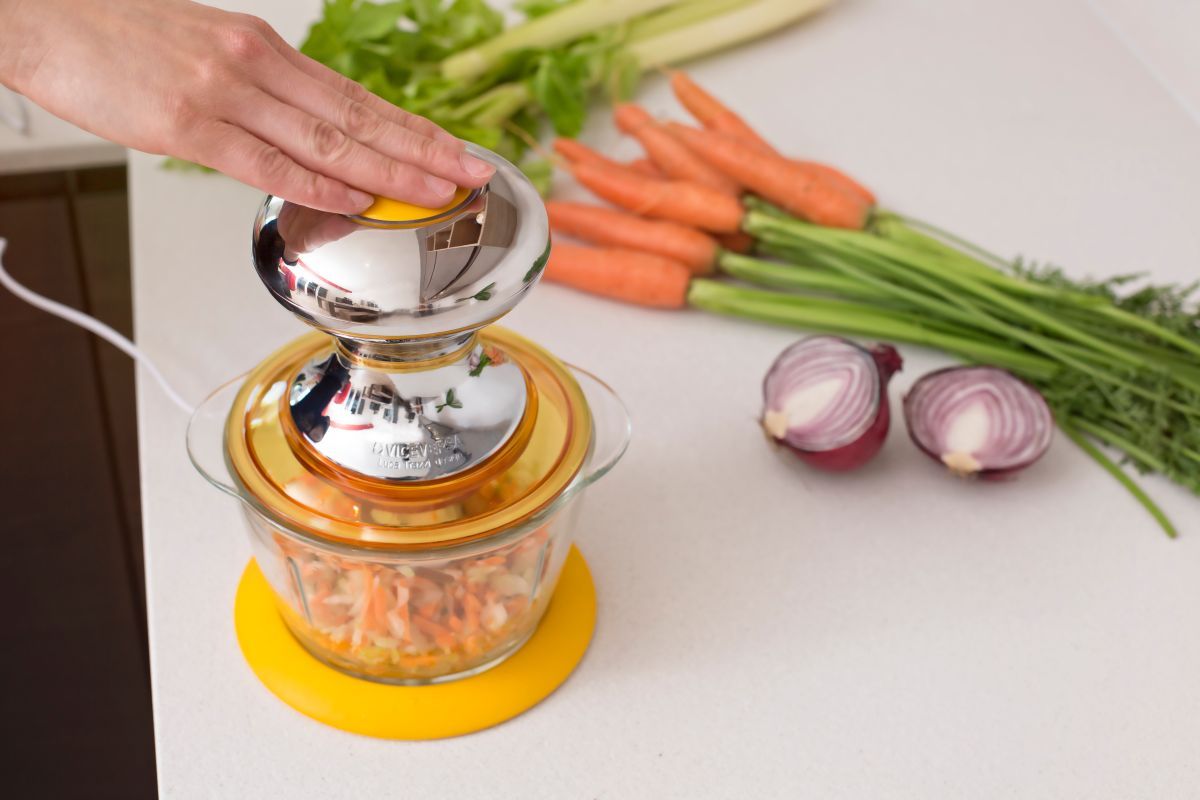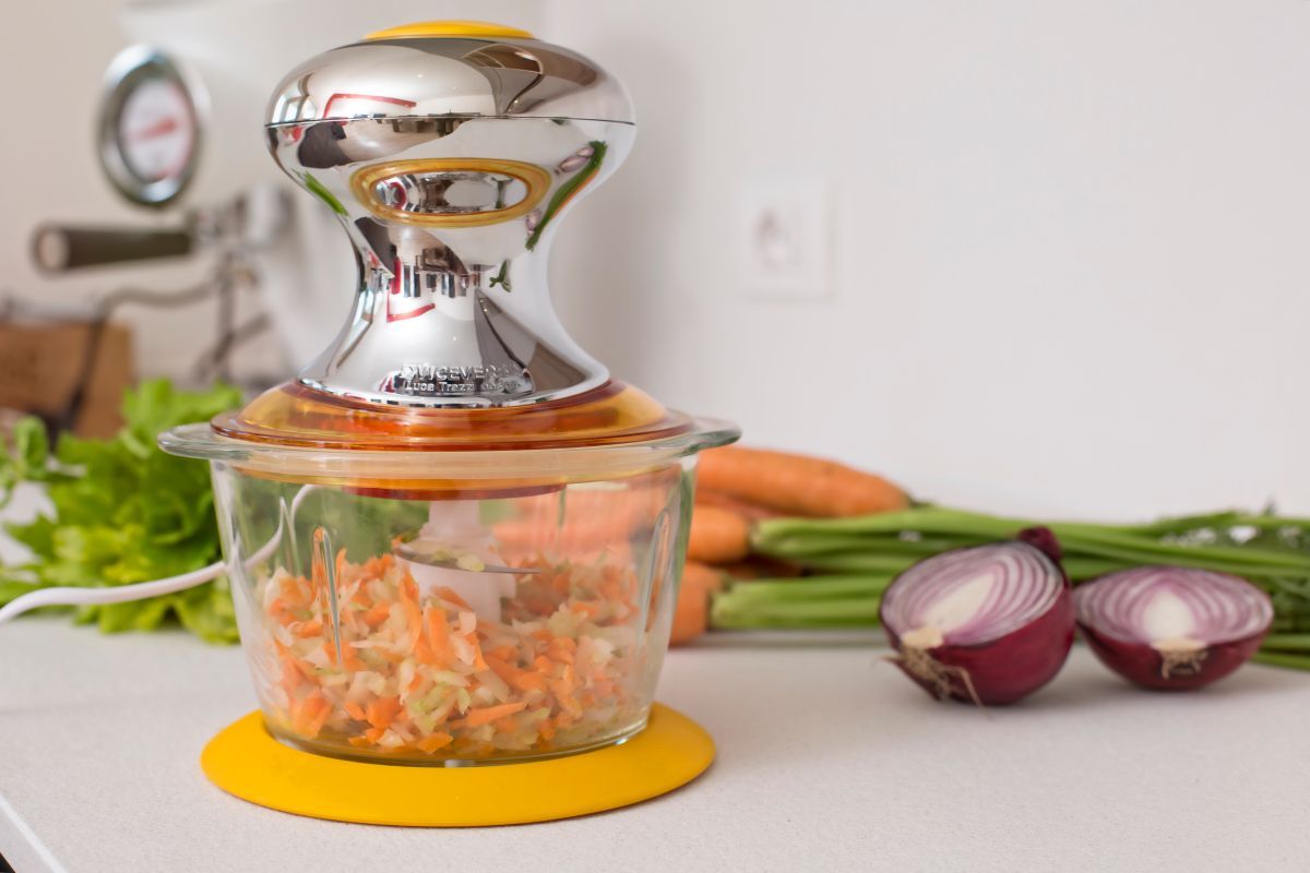 Linee moderne ed accattivanti per il tritatutto Viceversa Tix con doppia lama in acciaio inox per una tritatura omogenea.
