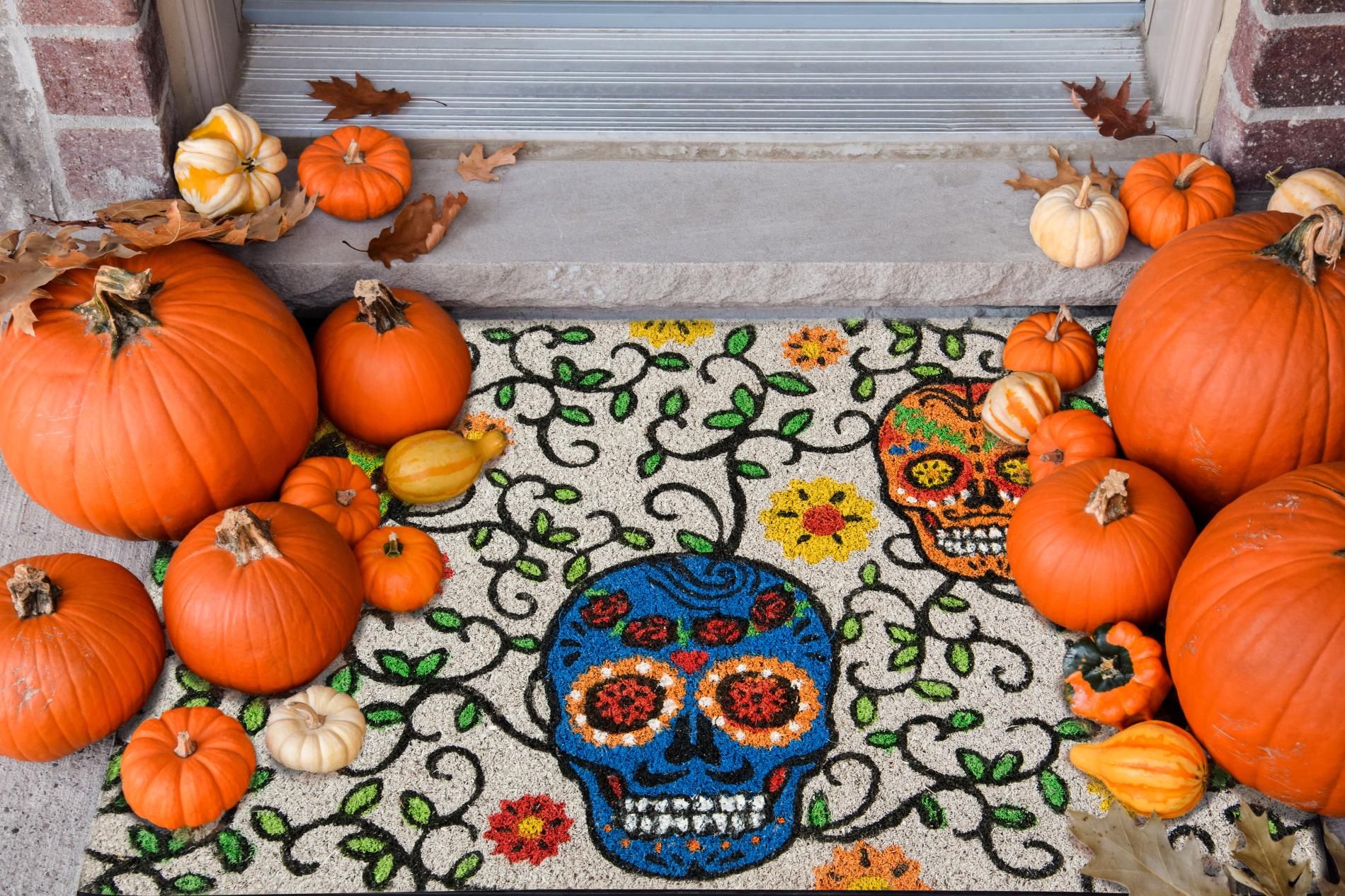Zerbino fuoriporta in cocco a fantasia teschi, stile messicano. Misura 60x40 cm. Ultraresistente, decorazione stampata di qualità. Parte sottostante in PVC, antiscivolo.