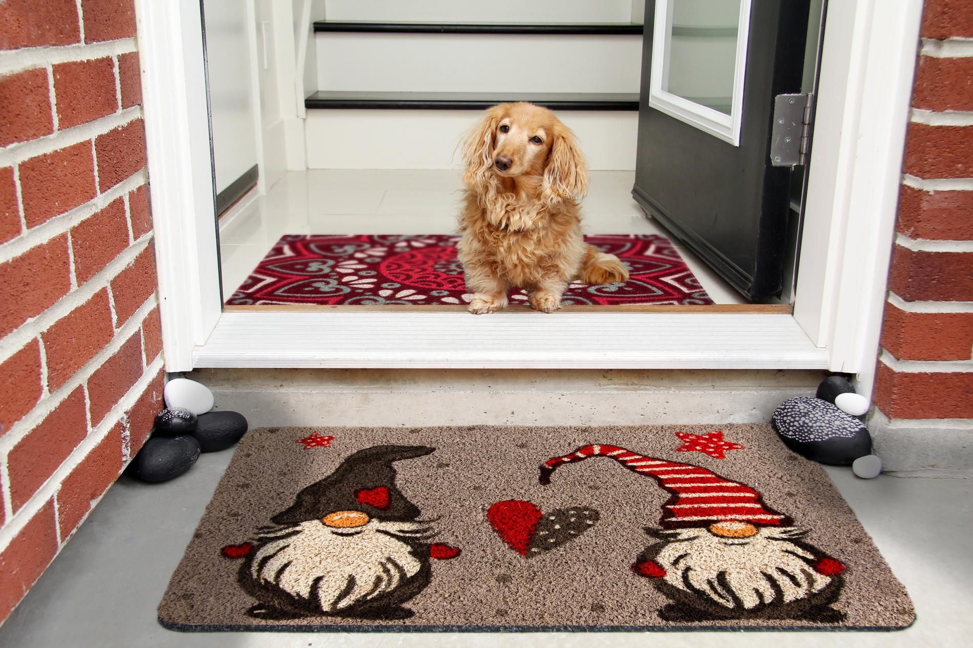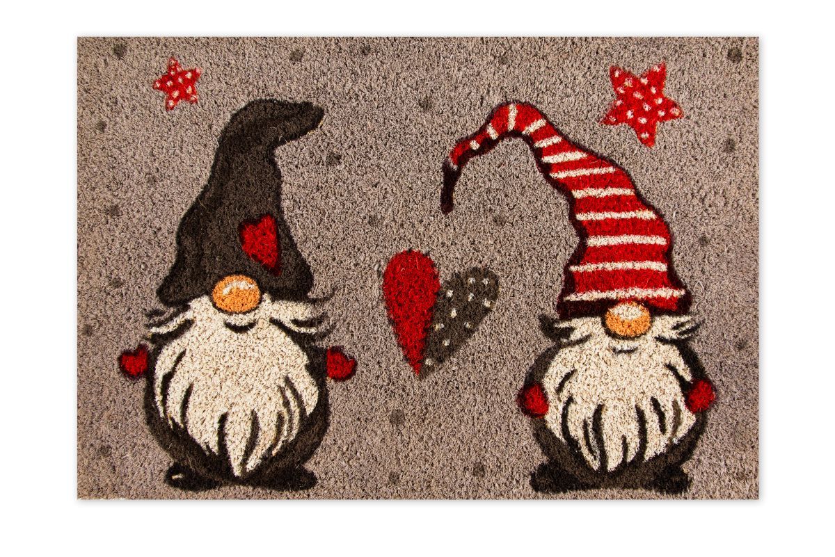 Zerbino fuoriporta in cocco con fantasia Gnomo di Excélsa. Misura 60x40 cm. Ultraresistente, decorazione stampata di qualità. Parte sottostante in PVC, antiscivolo.
